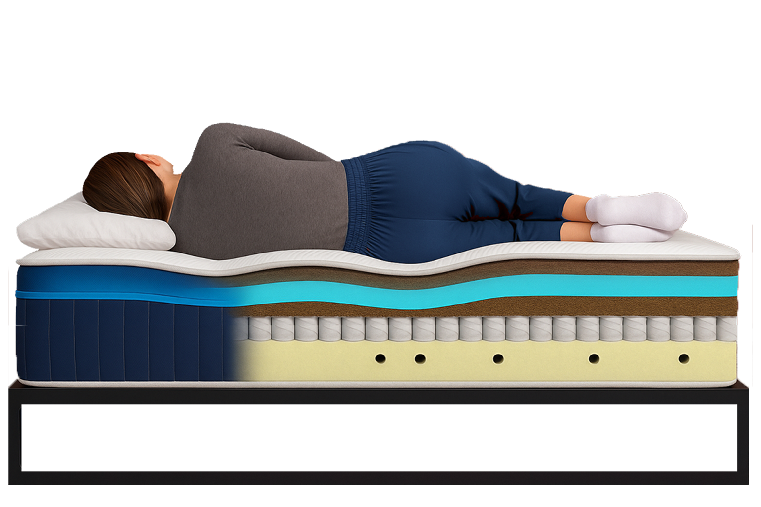 LuxeMattresses combines hybrid innovation, breathable natural materials, FortiCoil™ precision, and EnduraSpring™ strength – engineered to support deeper sleep, cooler nights, and years of lasting comfort.