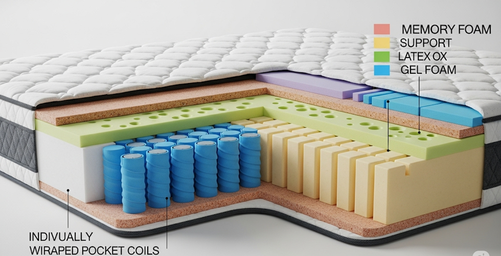 A hybrid mattress stacks specialized layers like a precision engine. The base uses pocket coils—individual springs wrapped in fabric. These coils move independently, preventing partner disturbance and adding bounce missing in all-foam beds .
