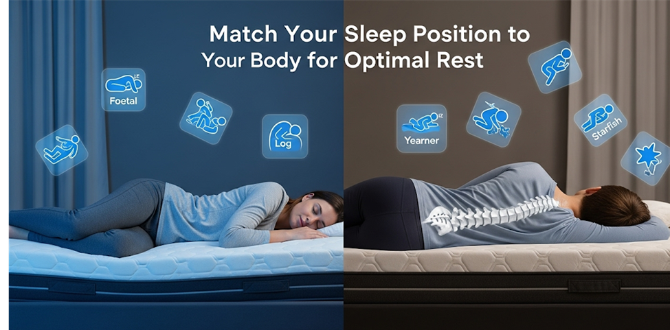 Your sleep position directly impacts spinal stress and pressure points. Choosing the wrong firmness for how you sleep worsens back and hip pain. Below, we match mattress types to side, back/stomach, and combination sleepers using lab data.