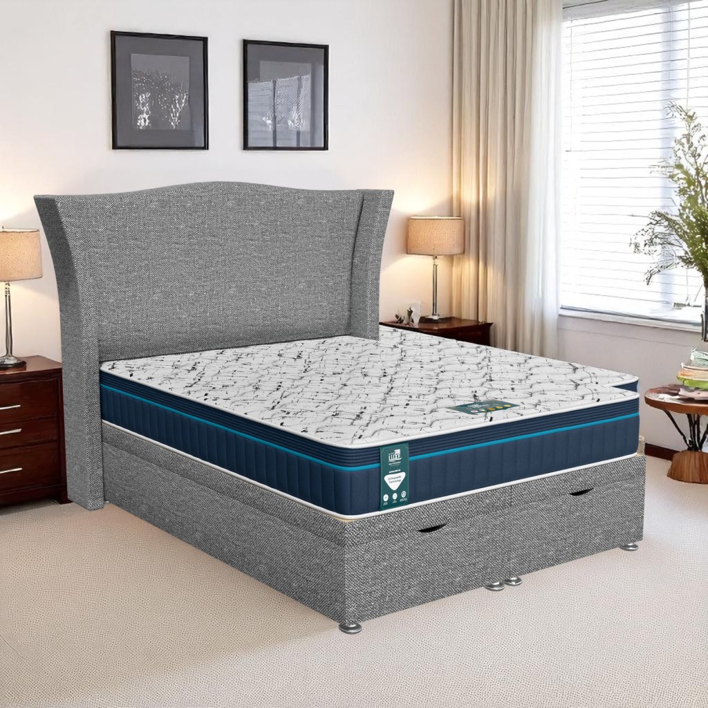 Our ottoman storage system features high-performance cylindrical auto-lift gas pistons, engineered for smooth, effortless lifting and closing. These mechanisms are rigorously tested for reliability and safety, ensuring easy access to storage with minimal effort. To demonstrate our confidence in the technology, all lift cylinders come with a full 5-year warranty, protecting your investment and guaranteeing long-term performance. Whether the mattress is light or heavy, the system remains secure, controlled, and simple to operate.