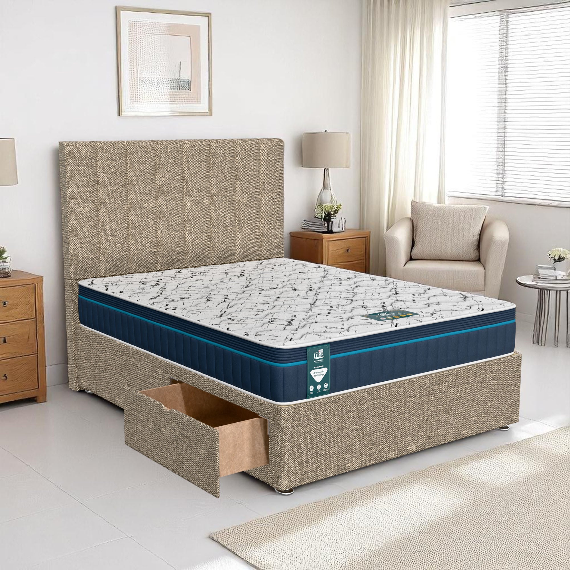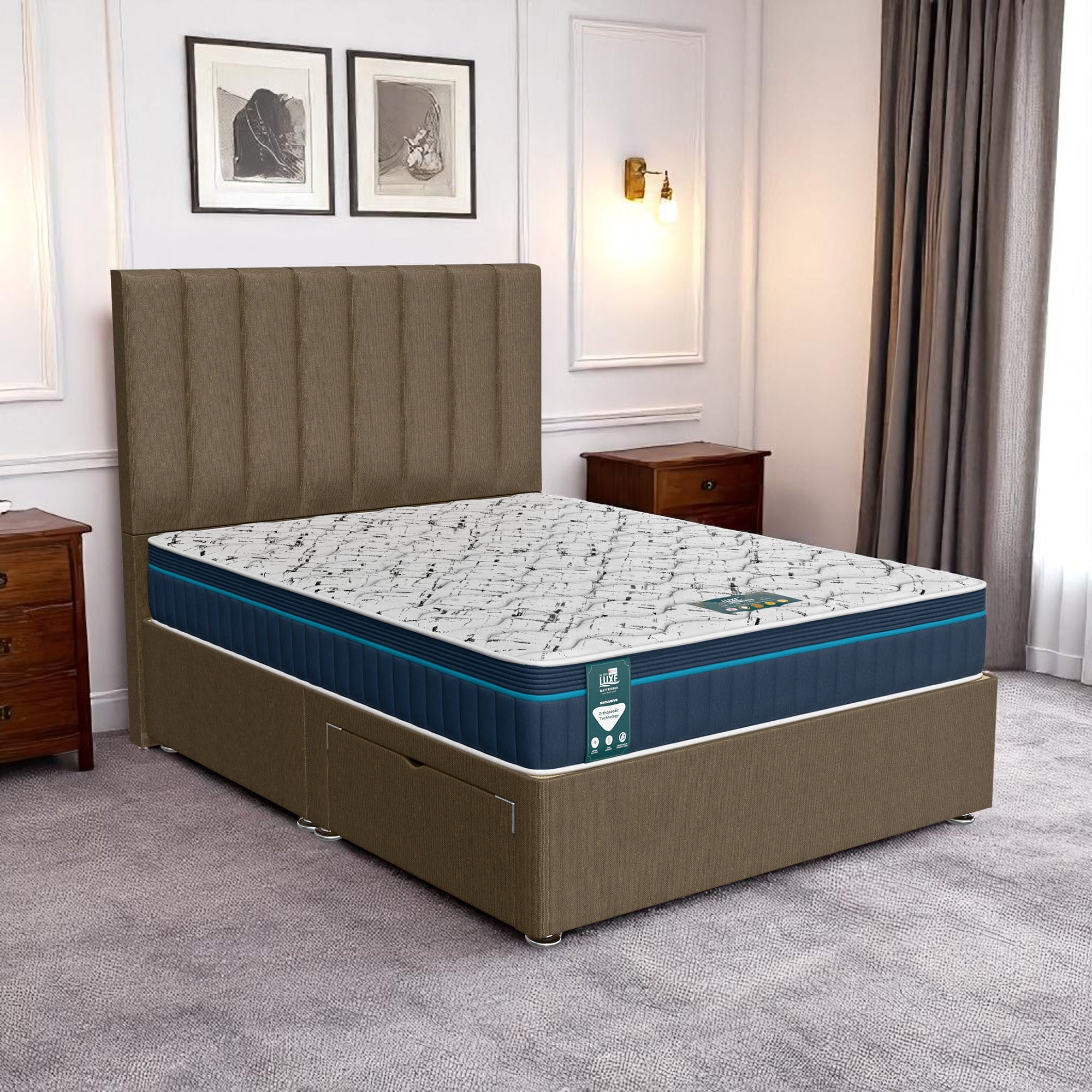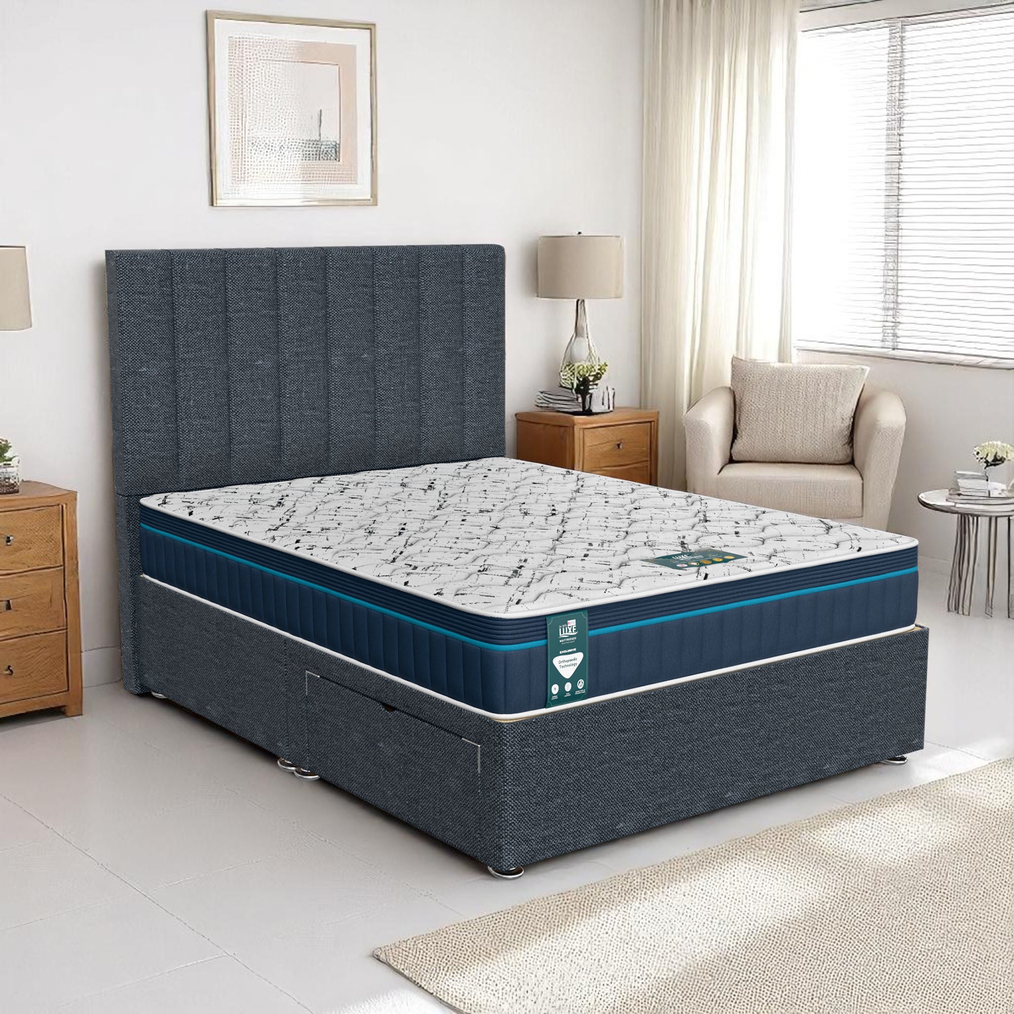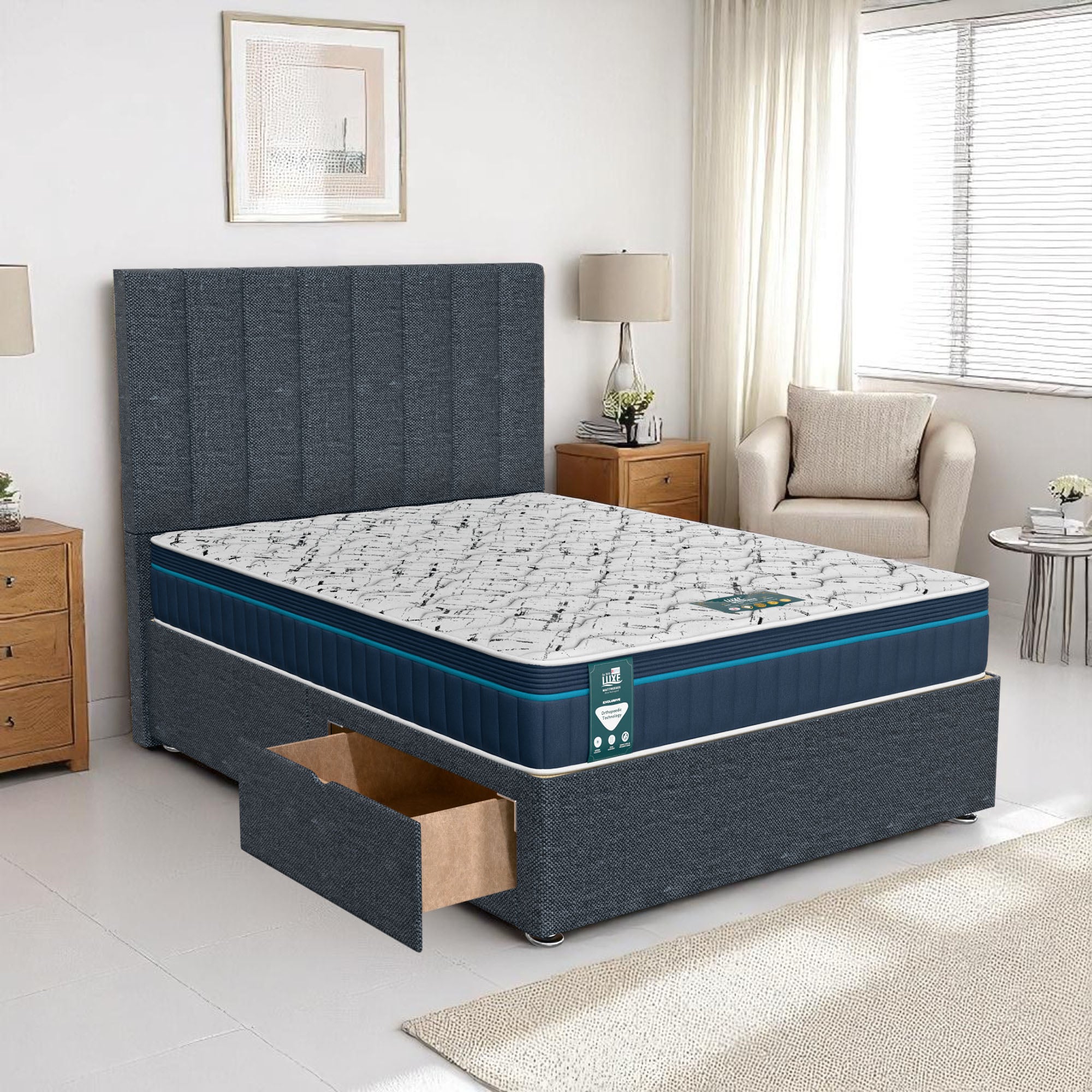 Available with up to four smooth-glide drawers, our divan beds offer practical hidden storage for bedding, towels, clothing, or seasonal items. The drawer system is engineered for easy opening and closing, maximising room space while keeping your bedroom organised and clutter-free.