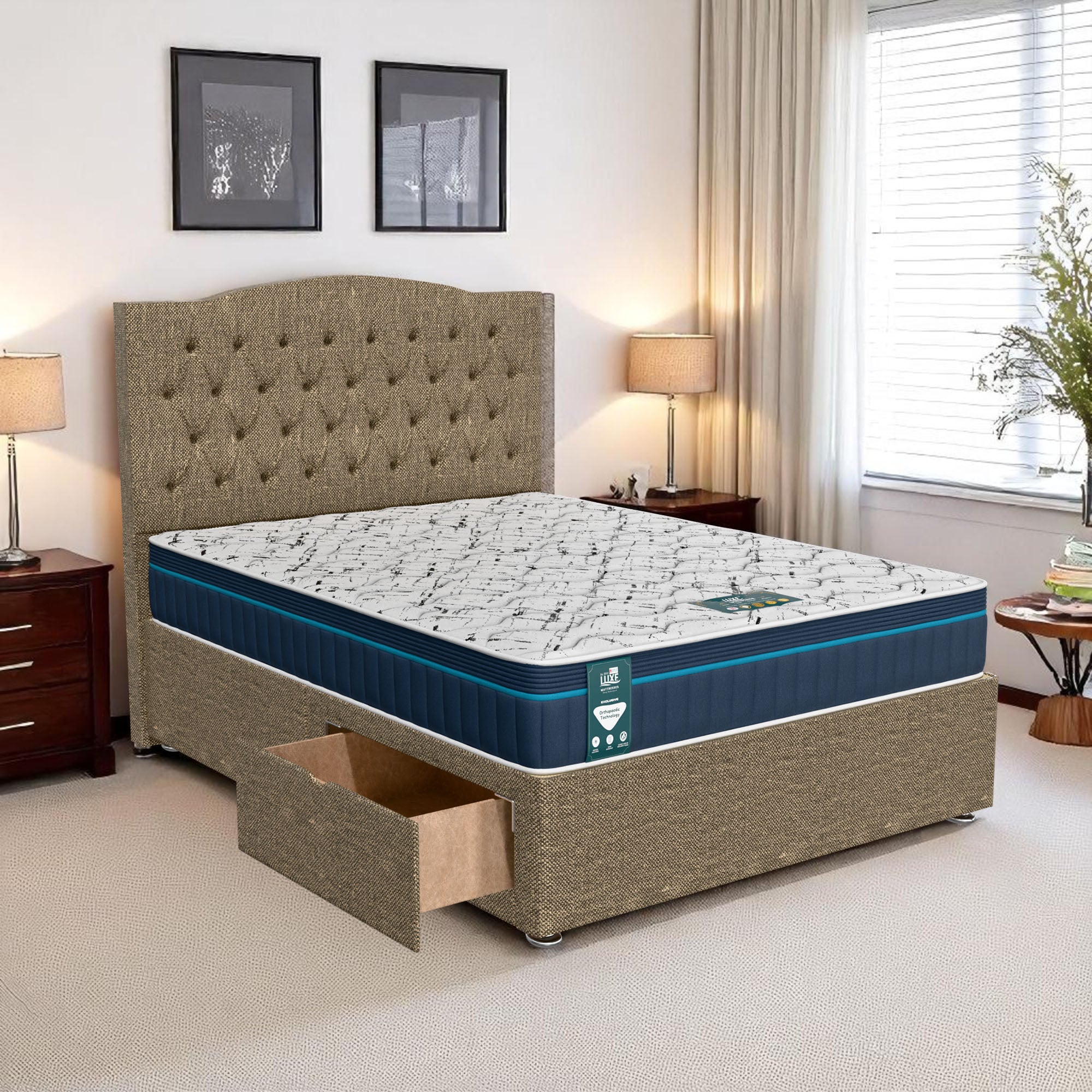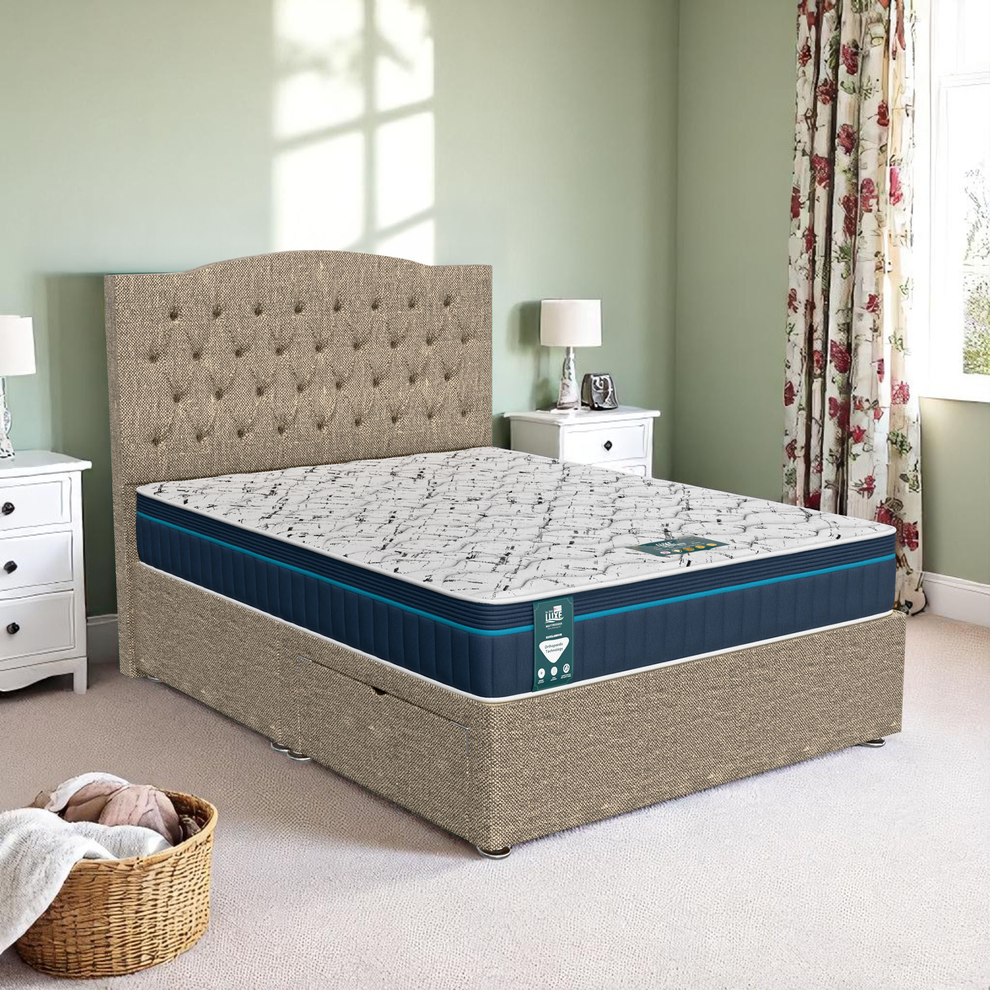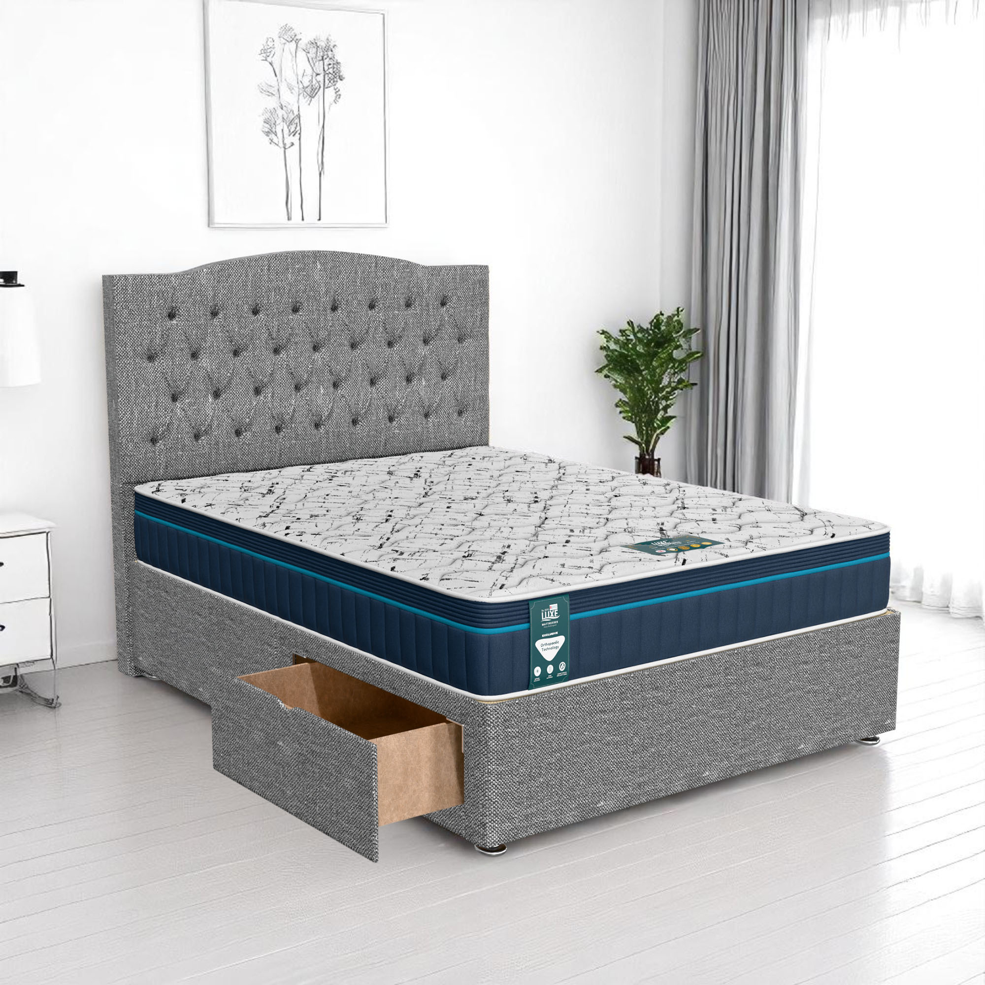 The Ascot Tufted Divan Bed combines traditional craftsmanship with contemporary practicality. Featuring a beautifully upholstered base and a luxuriously tufted headboard, this divan delivers both elegance and comfort. With optional integrated storage drawers, it ensures your bedroom stays stylish and clutter-free, making it the ideal choice for modern living.