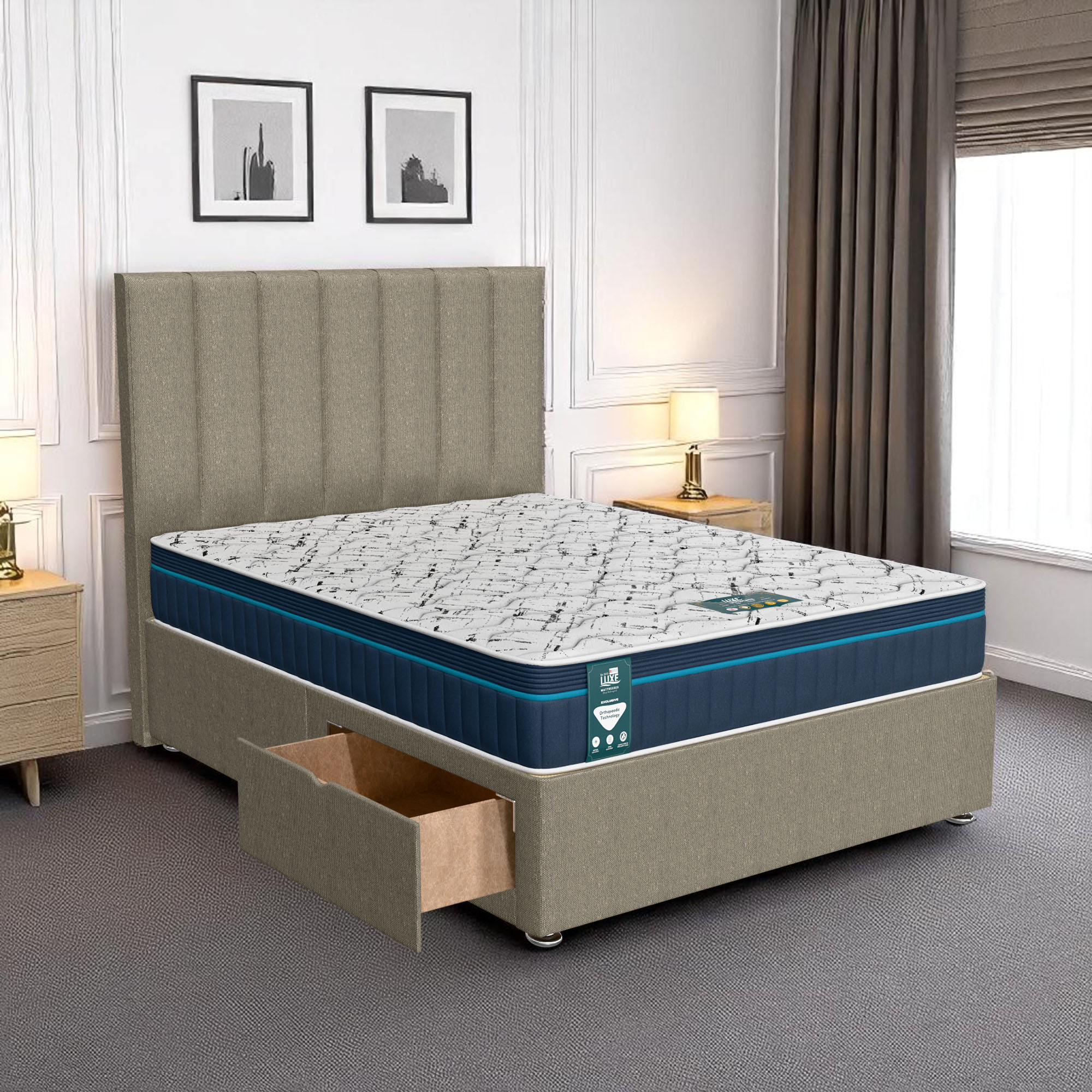 Available with up to four smooth-glide drawers, our divan beds offer practical hidden storage for bedding, towels, clothing, or seasonal items. The drawer system is engineered for easy opening and closing, maximising room space while keeping your bedroom organised and clutter-free.