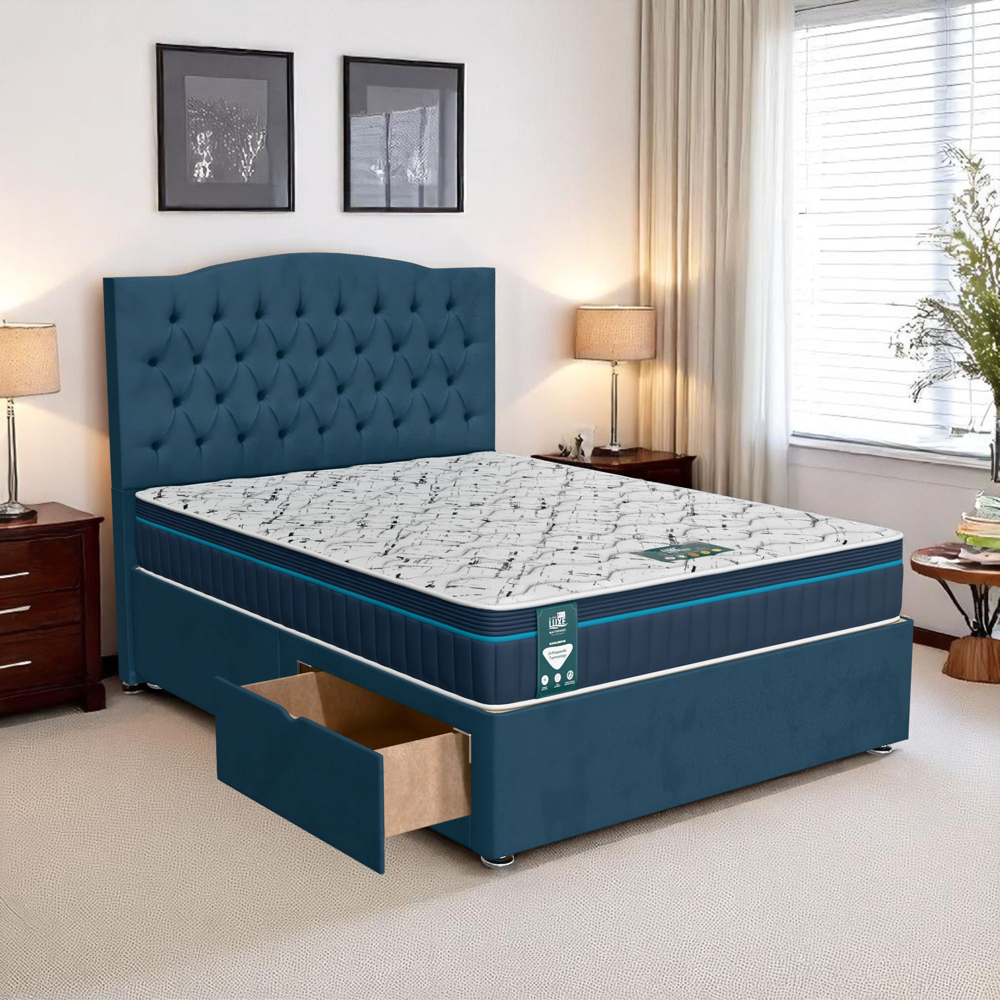 Available with up to four smooth-glide drawers, our divan beds offer practical hidden storage for bedding, towels, clothing, or seasonal items. The drawer system is engineered for easy opening and closing, maximising room space while keeping your bedroom organised and clutter-free.