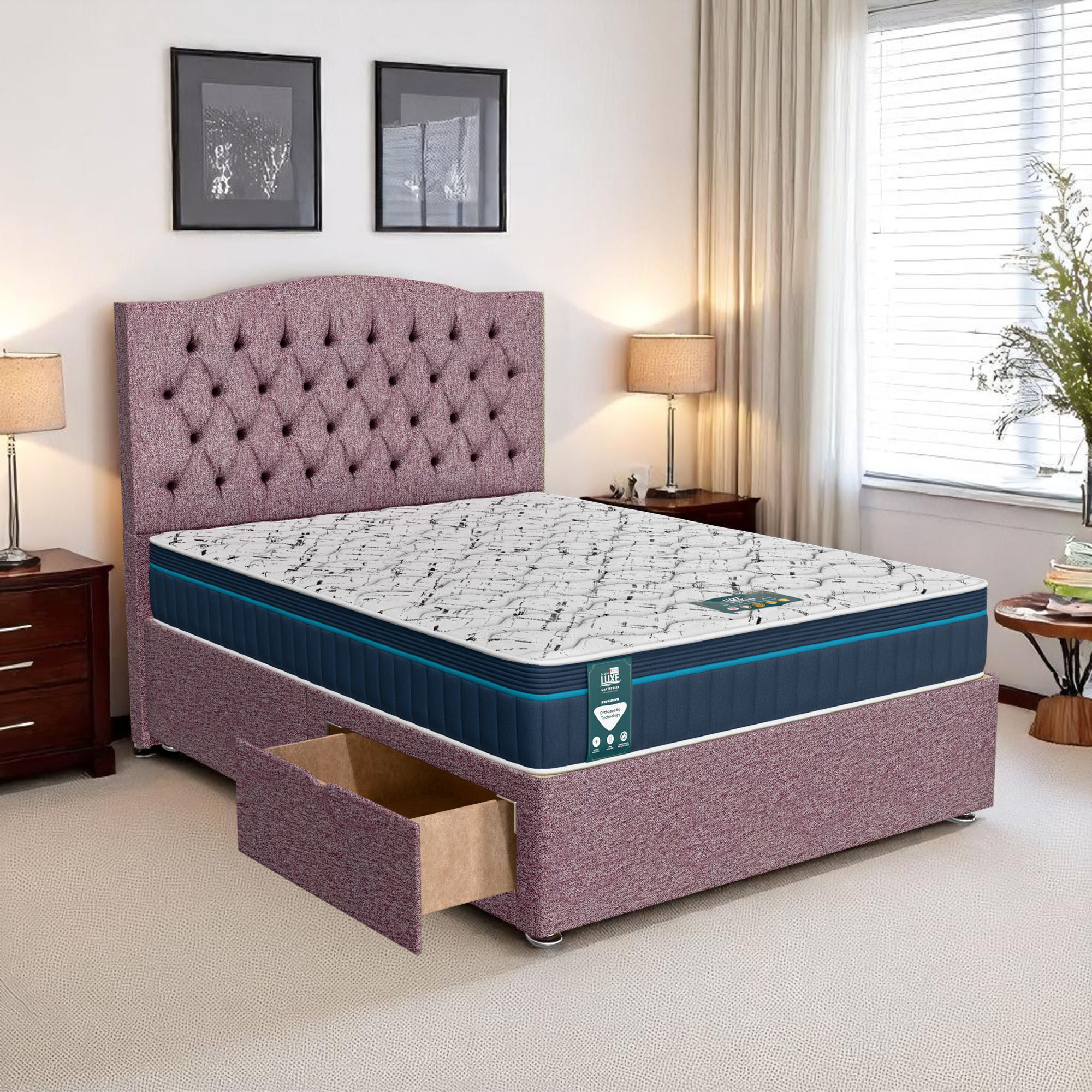 Lilac Wool Tufted Divan Bed– Soft Elegance, Exceptional Comfort, and Hidden Storage