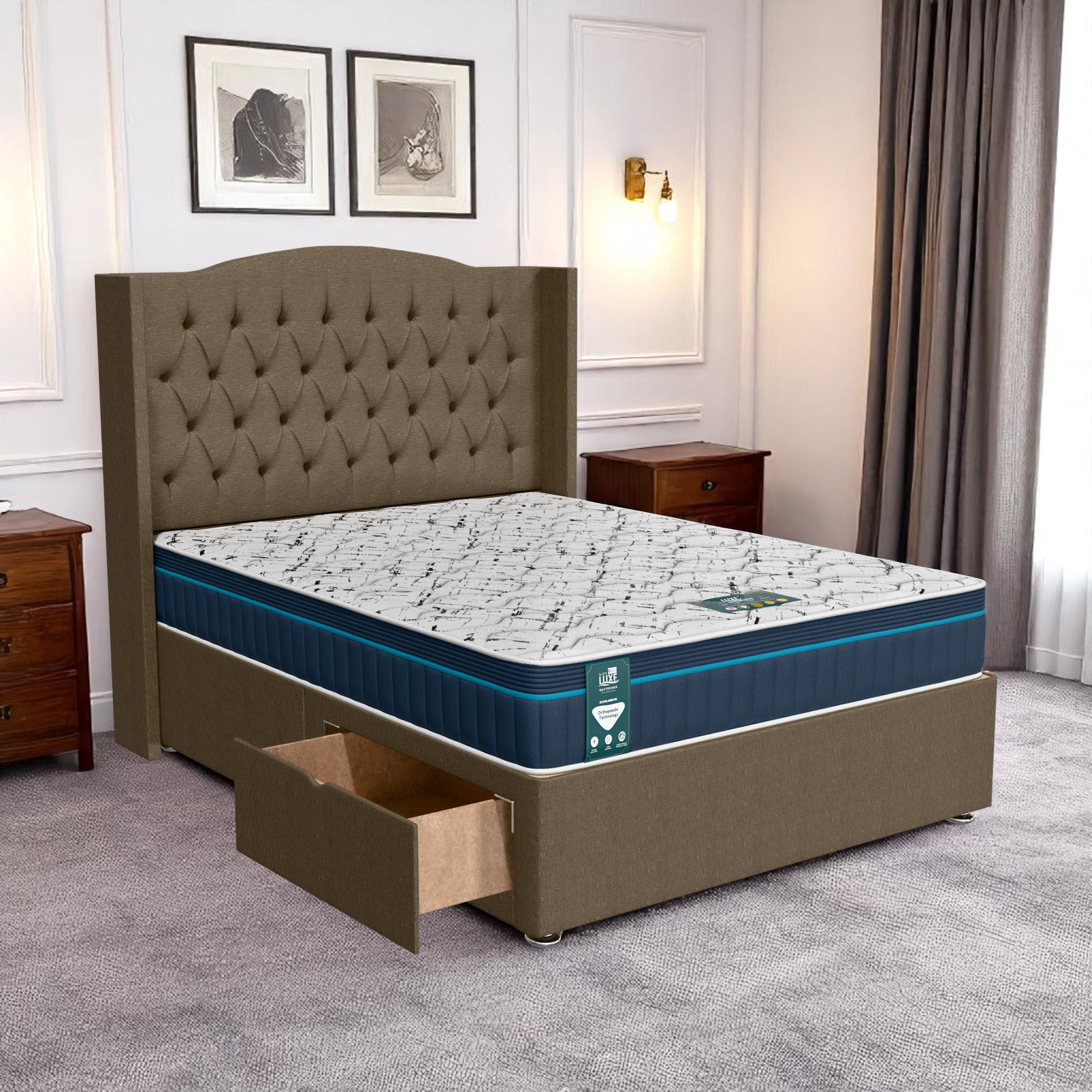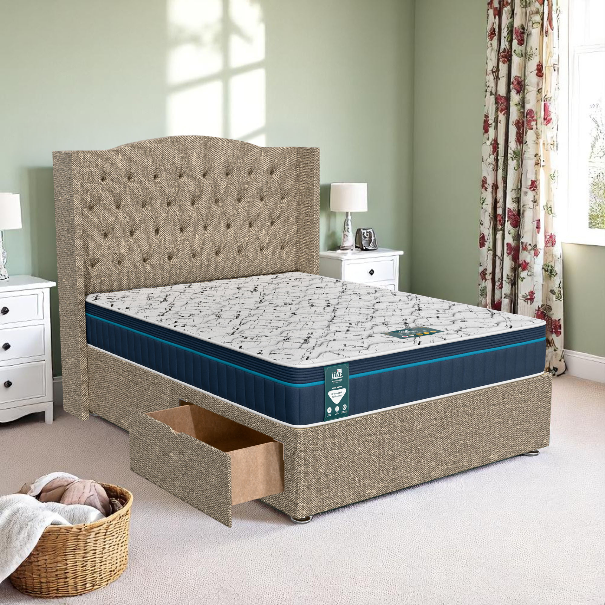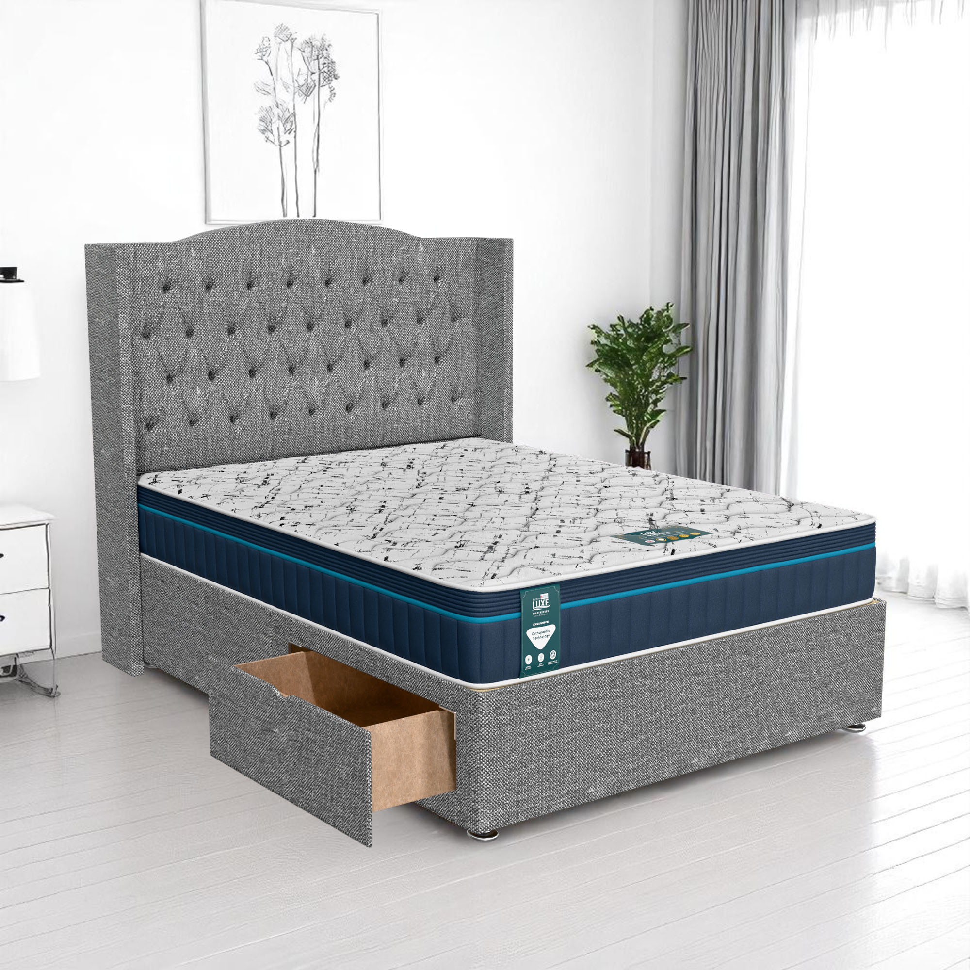 Available with up to four smooth-glide drawers, our divan beds offer practical hidden storage for bedding, towels, clothing, or seasonal items. The drawer system is engineered for easy opening and closing, maximising room space while keeping your bedroom organised and clutter-free.
