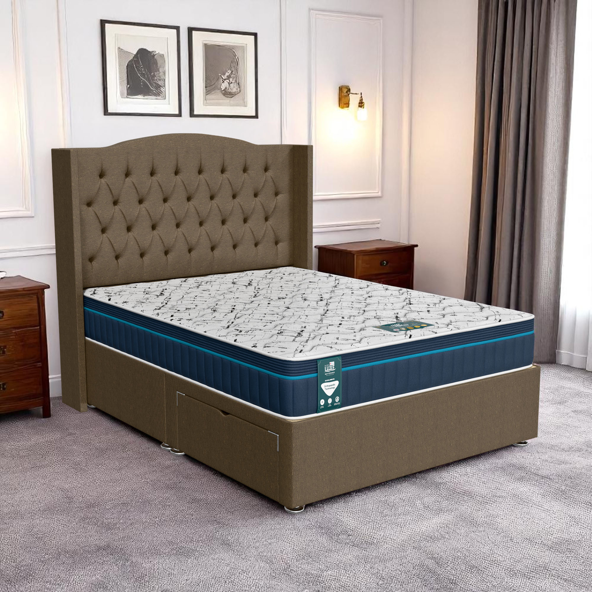 The Luxe Ascot Chesterfield Curved Divan Bed is constructed from high-quality materials, ensuring long-lasting durability and comfort. Its solid frame and expert upholstery guarantee that this bed will remain a centerpiece in your bedroom for years to come. Luxe Mattress backs the bed with a 5-year warranty, giving you confidence in your investment and the assurance that your bed will stand the test of time.