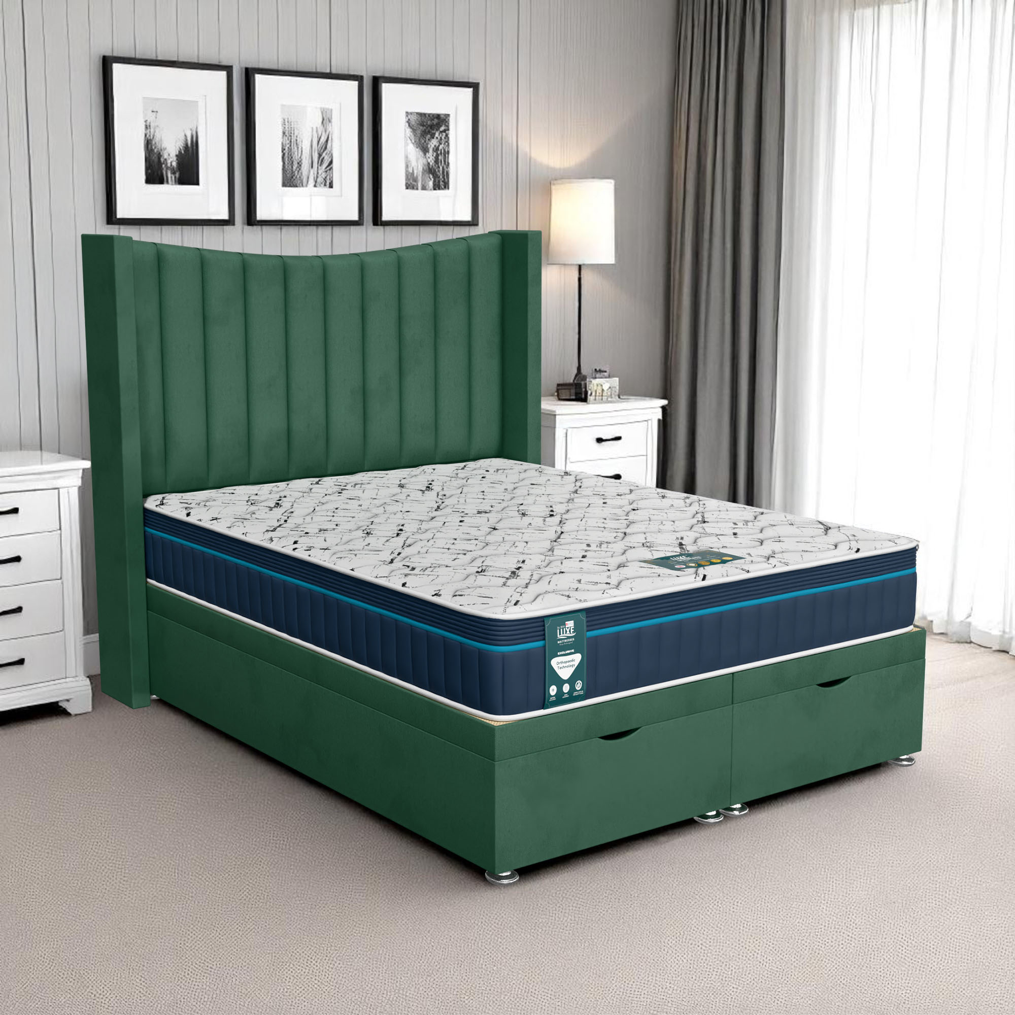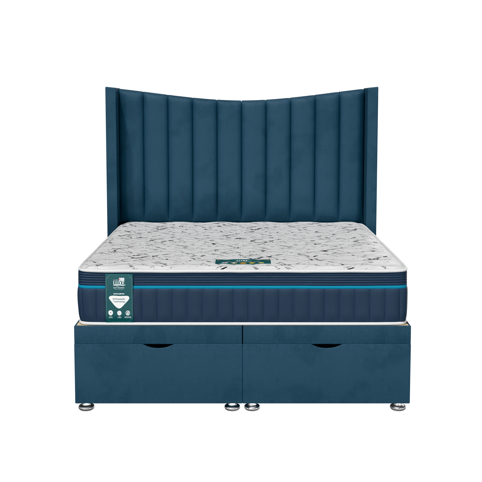 The Luxe Chesterfield Curved Wings Ottoman Bed combines the timeless elegance of a traditional Chesterfield design with modern functionality. Its beautifully curved headboard, accented by deep button tufting, brings a touch of sophistication to any bedroom. Alongside its luxurious look, the Luxe Chesterfield Curved Divan Bed also offers customizable storage options, making it both a stunning and practical addition to your space.