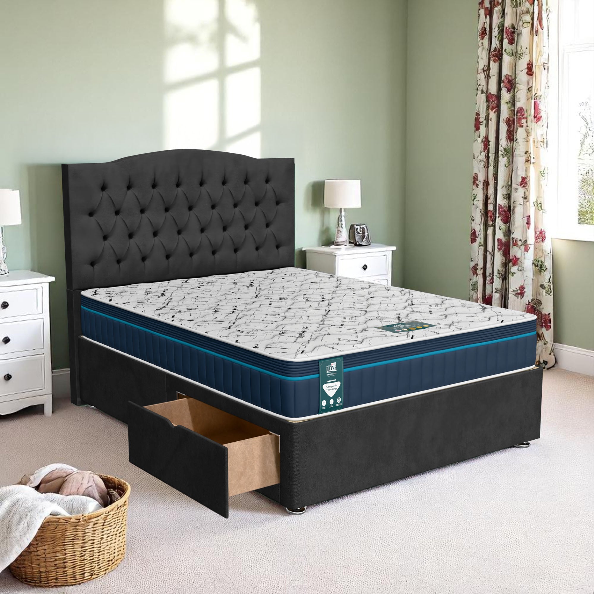 In addition to its elegant design, the Luxe Chesterfield Divan Bed offers a variety of storage options to help you keep your bedroom organized. The divan base comes with customizable drawer configurations, allowing you to choose the storage solution that best fits your needs: