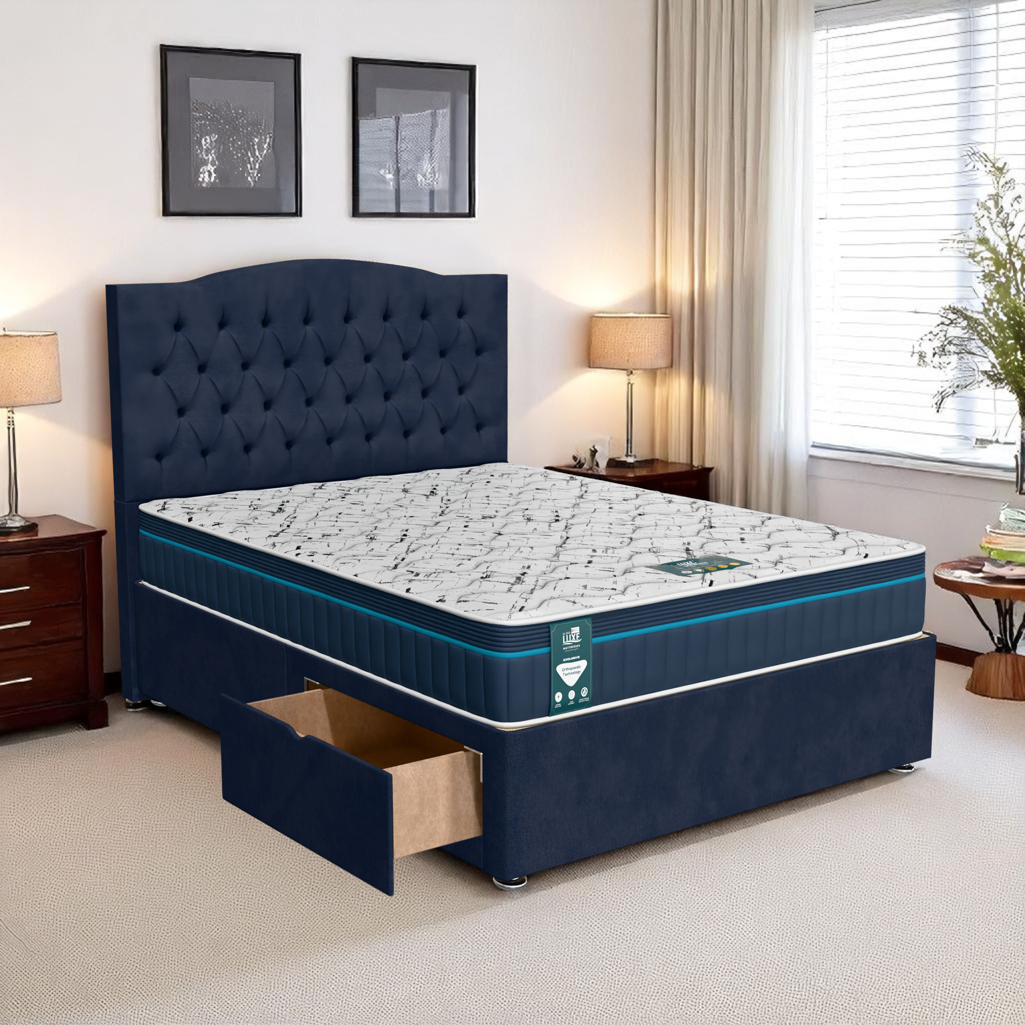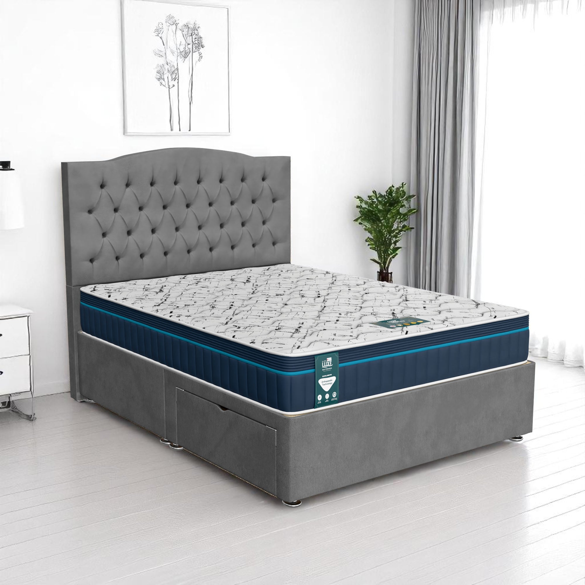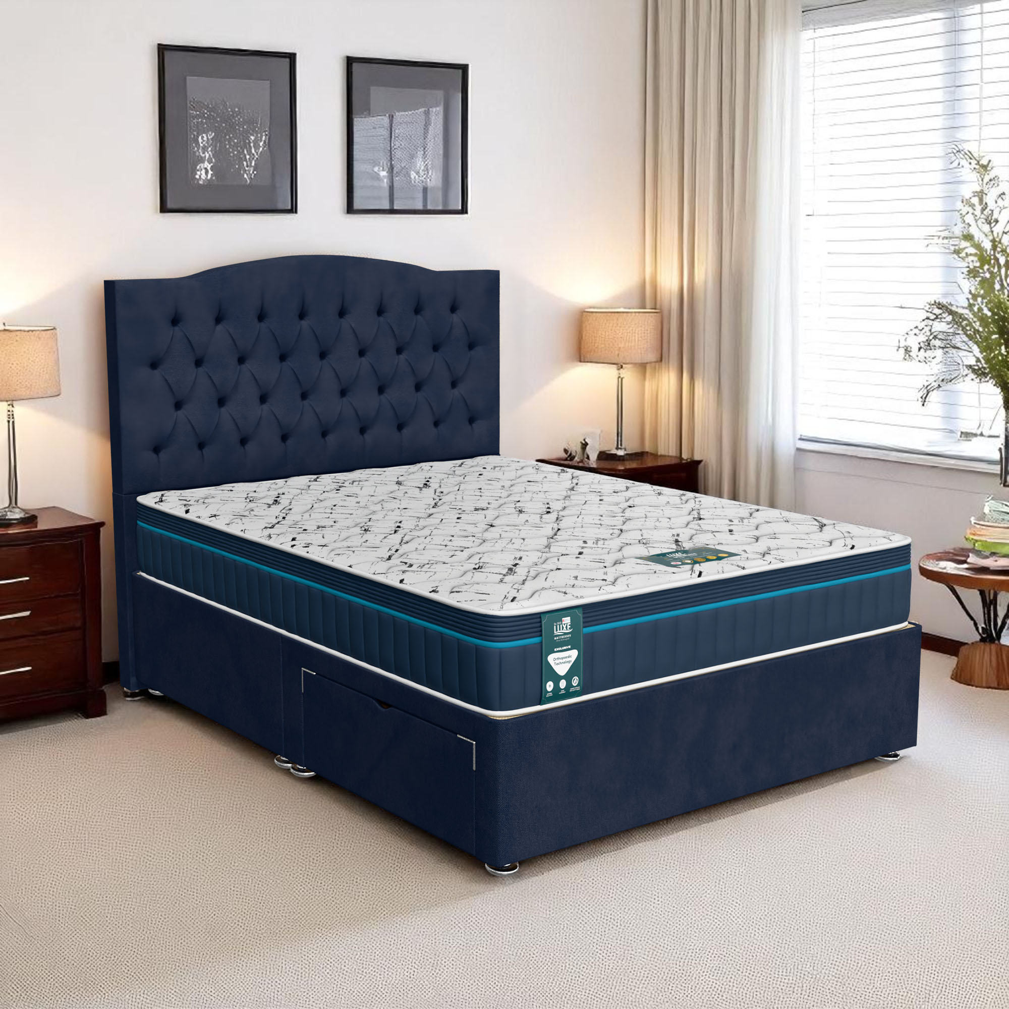 The Luxe Chesterfield Divan Bed brings the luxurious elegance of the iconic Chesterfield design into your bedroom, featuring deep button tufting and a sophisticated, tailored look. This premium bed offers both aesthetic appeal and functional storage solutions, making it the perfect centerpiece for any bedroom setting. Combining timeless style with modern-day practicality, the Luxe Chesterfield Divan Bed is the ideal choice for those who appreciate classic design without compromising on functionality.