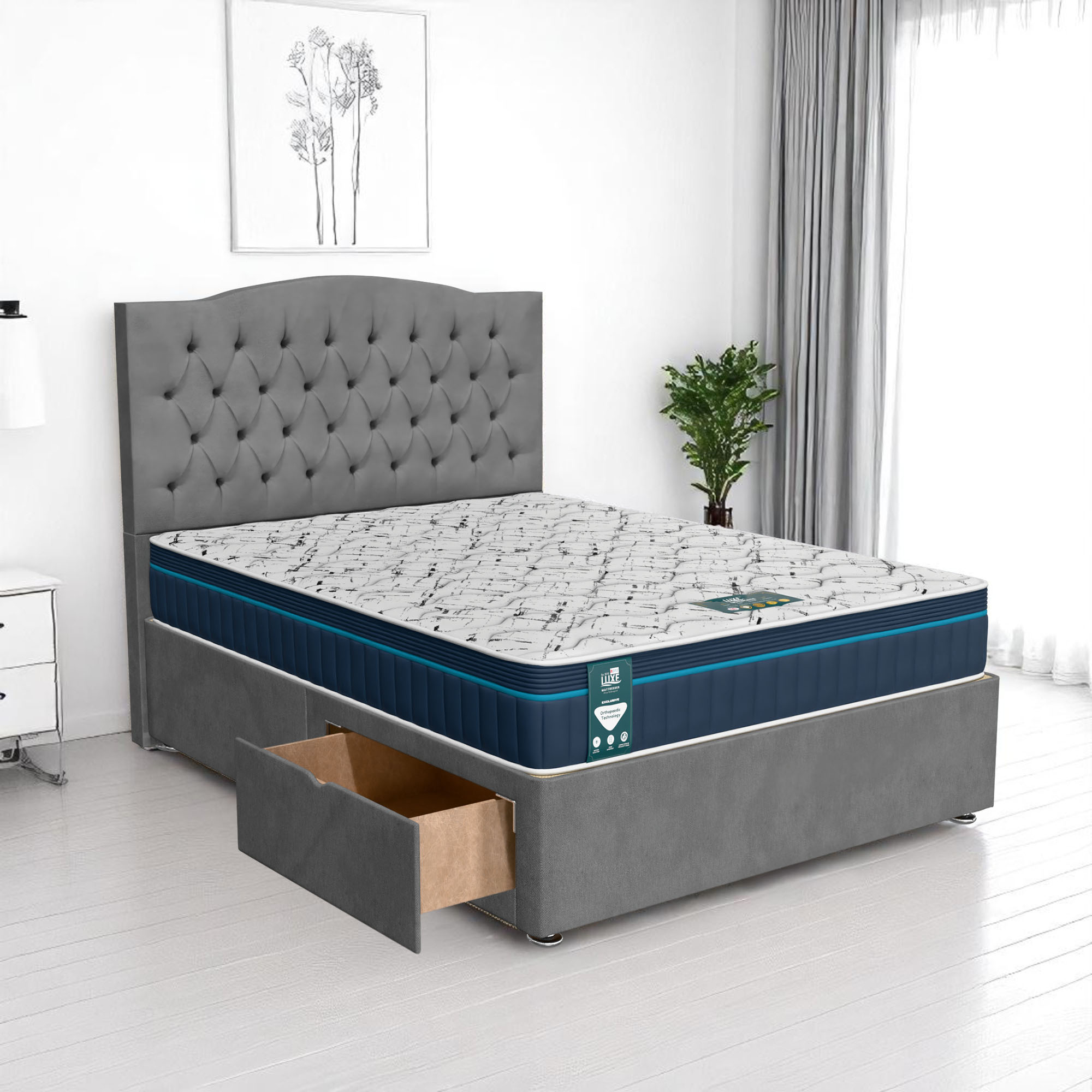 Available with up to four smooth-glide drawers, our divan beds offer practical hidden storage for bedding, towels, clothing, or seasonal items. The drawer system is engineered for easy opening and closing, maximising room space while keeping your bedroom organised and clutter-free.
