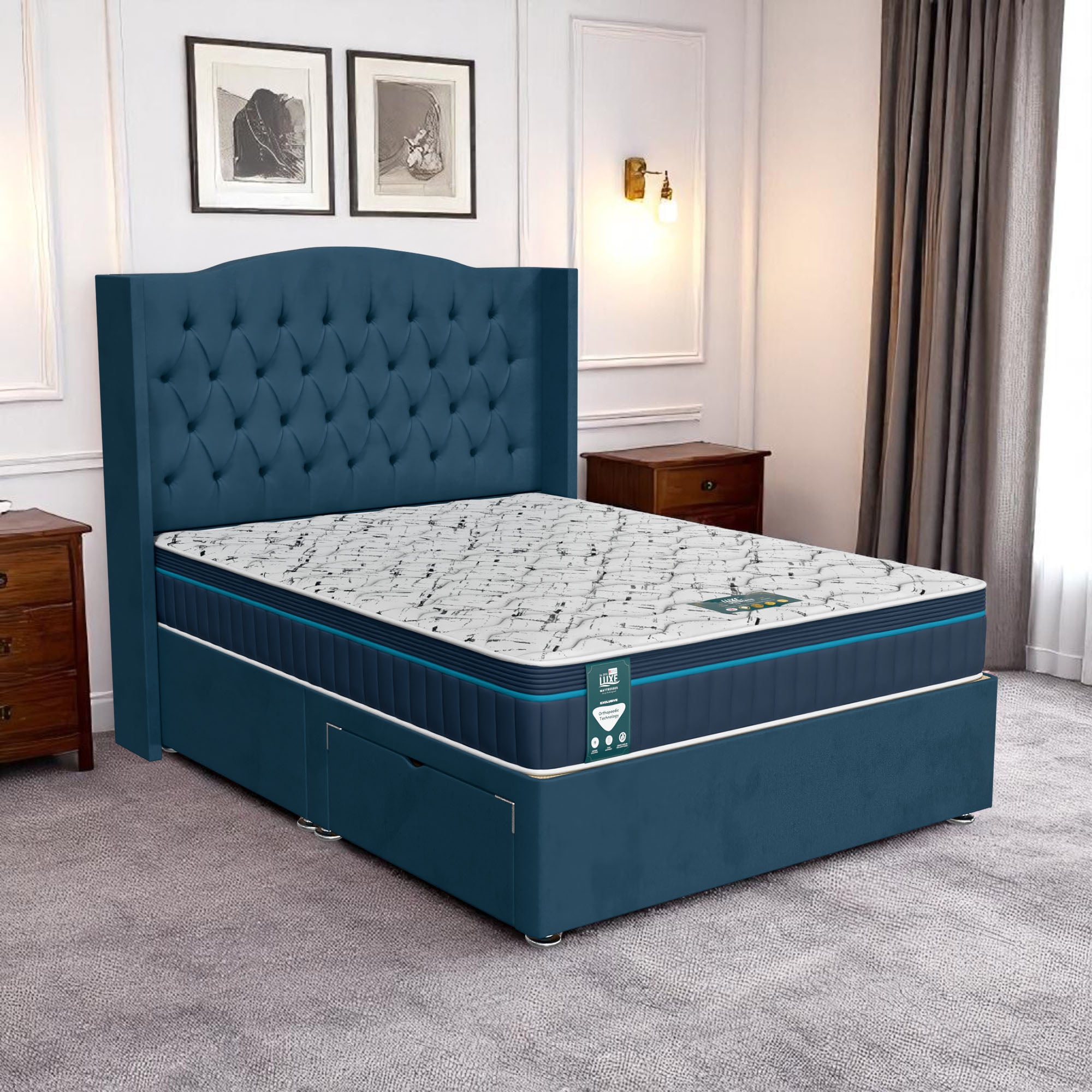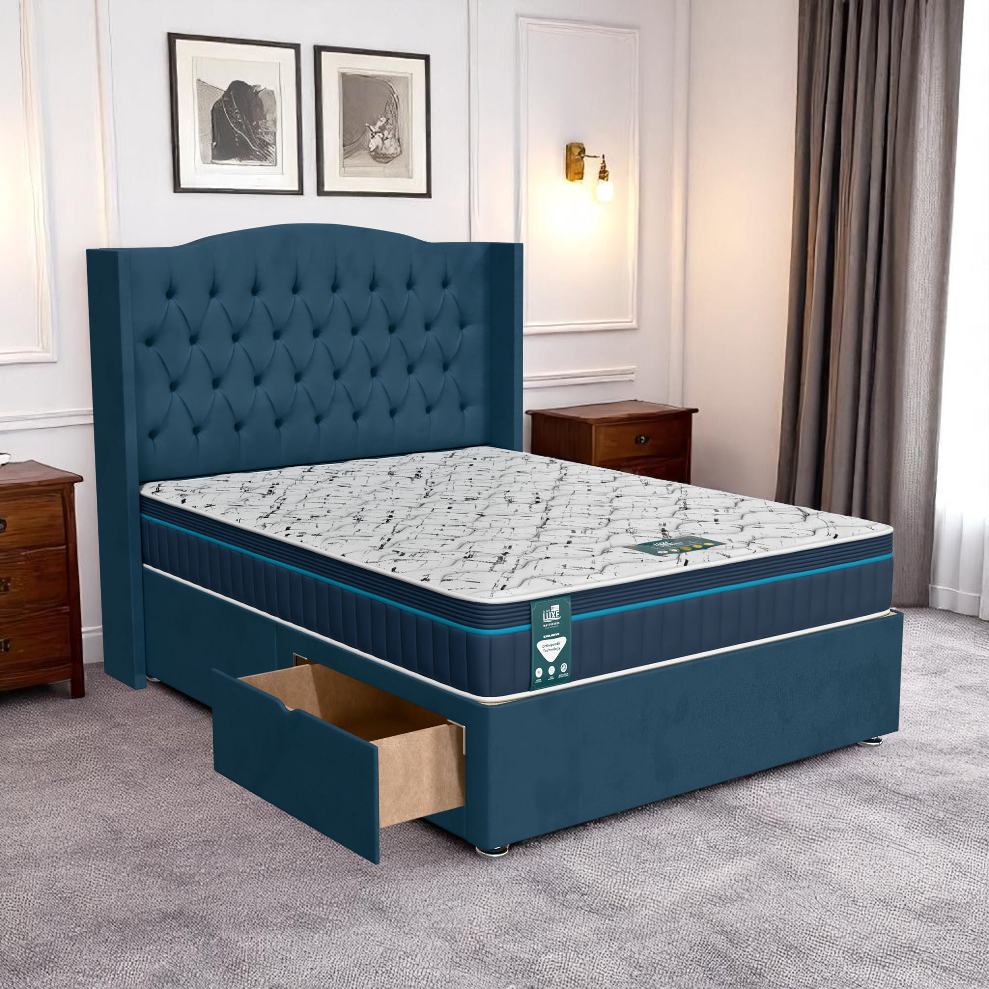 The Luxe Dark Milan Chesterfield Curved Divan Bed is constructed from high-quality materials, ensuring long-lasting durability and comfort. Its solid frame and expert upholstery guarantee that this bed will remain a centerpiece in your bedroom for years to come. Luxe Mattress backs the bed with a 5-year warranty, giving you confidence in your investment and the assurance that your bed will stand the test of time.
