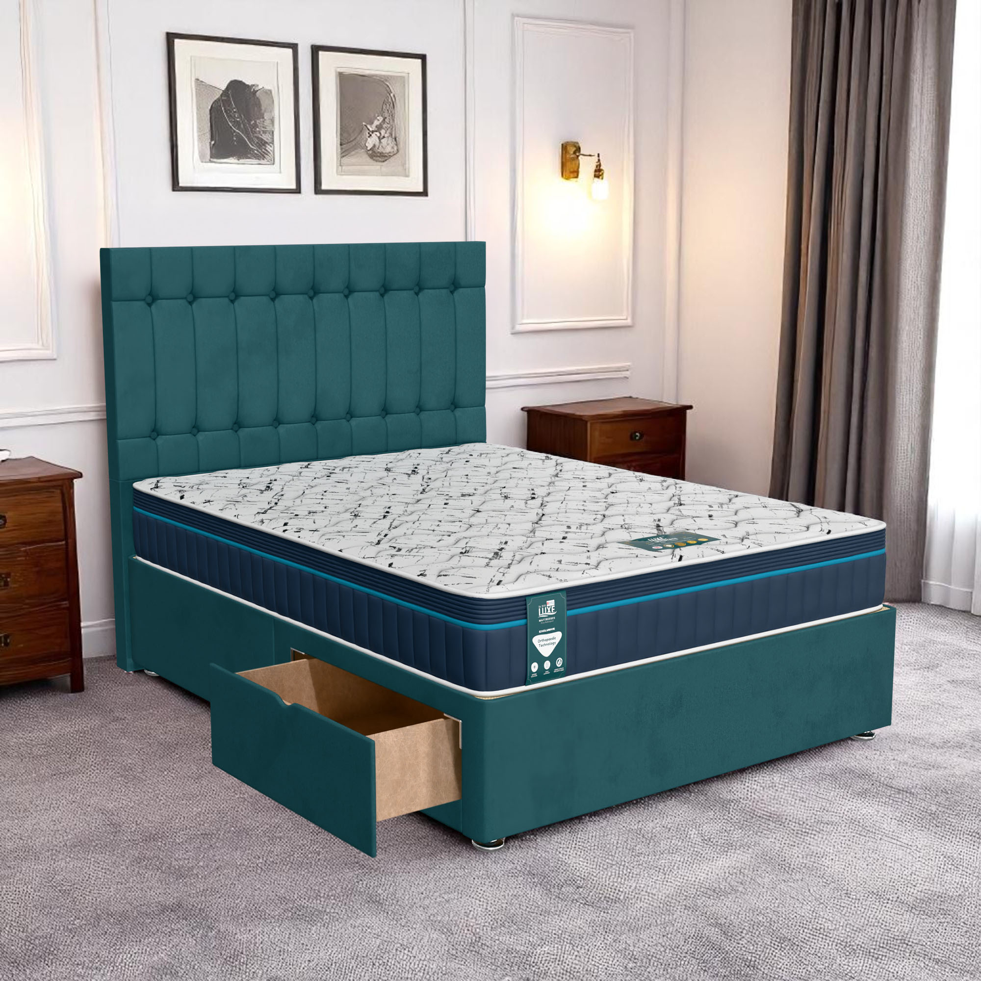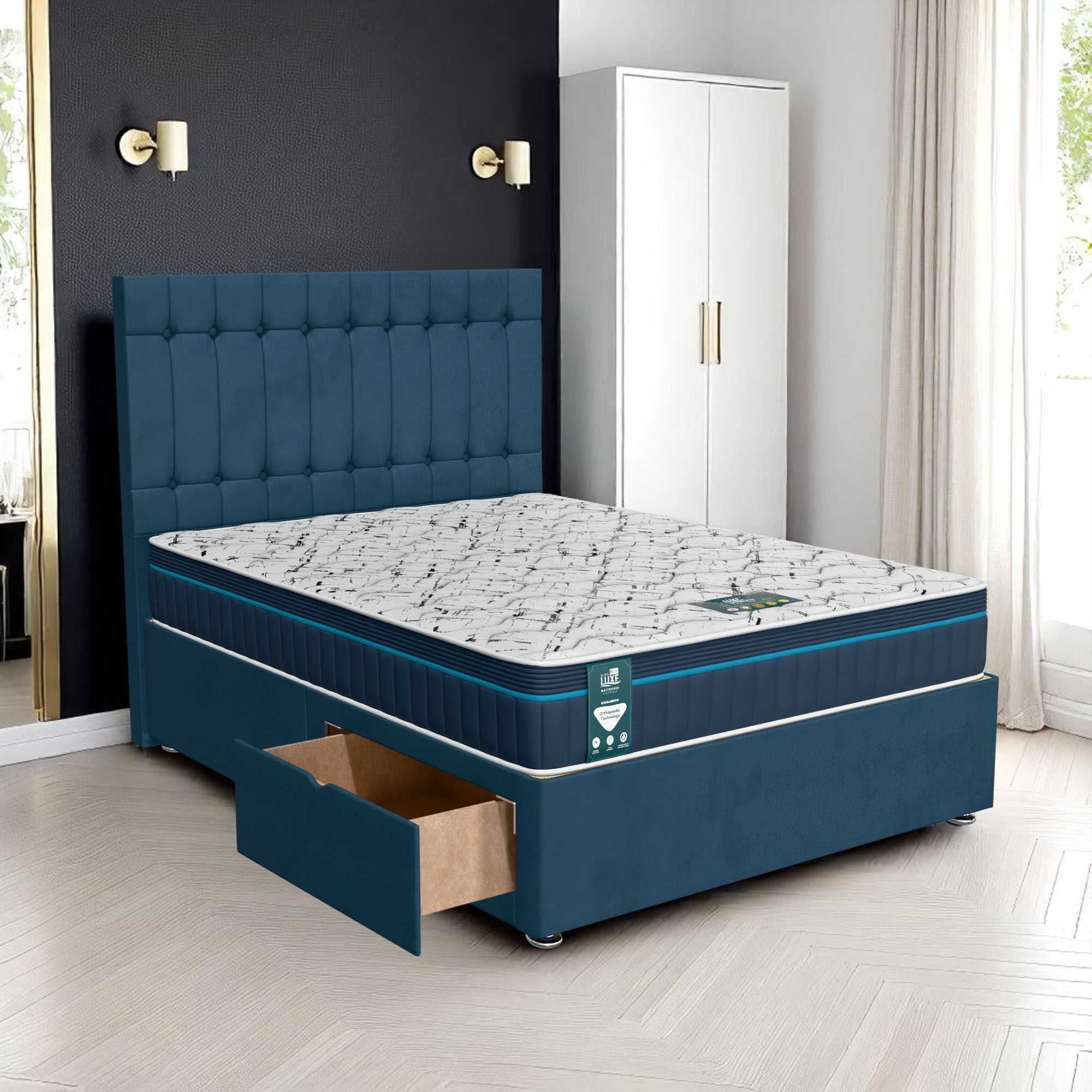 Available with up to four smooth-glide drawers, our divan beds offer practical hidden storage for bedding, towels, clothing, or seasonal items. The drawer system is engineered for easy opening and closing, maximising room space while keeping your bedroom organised and clutter-free.
