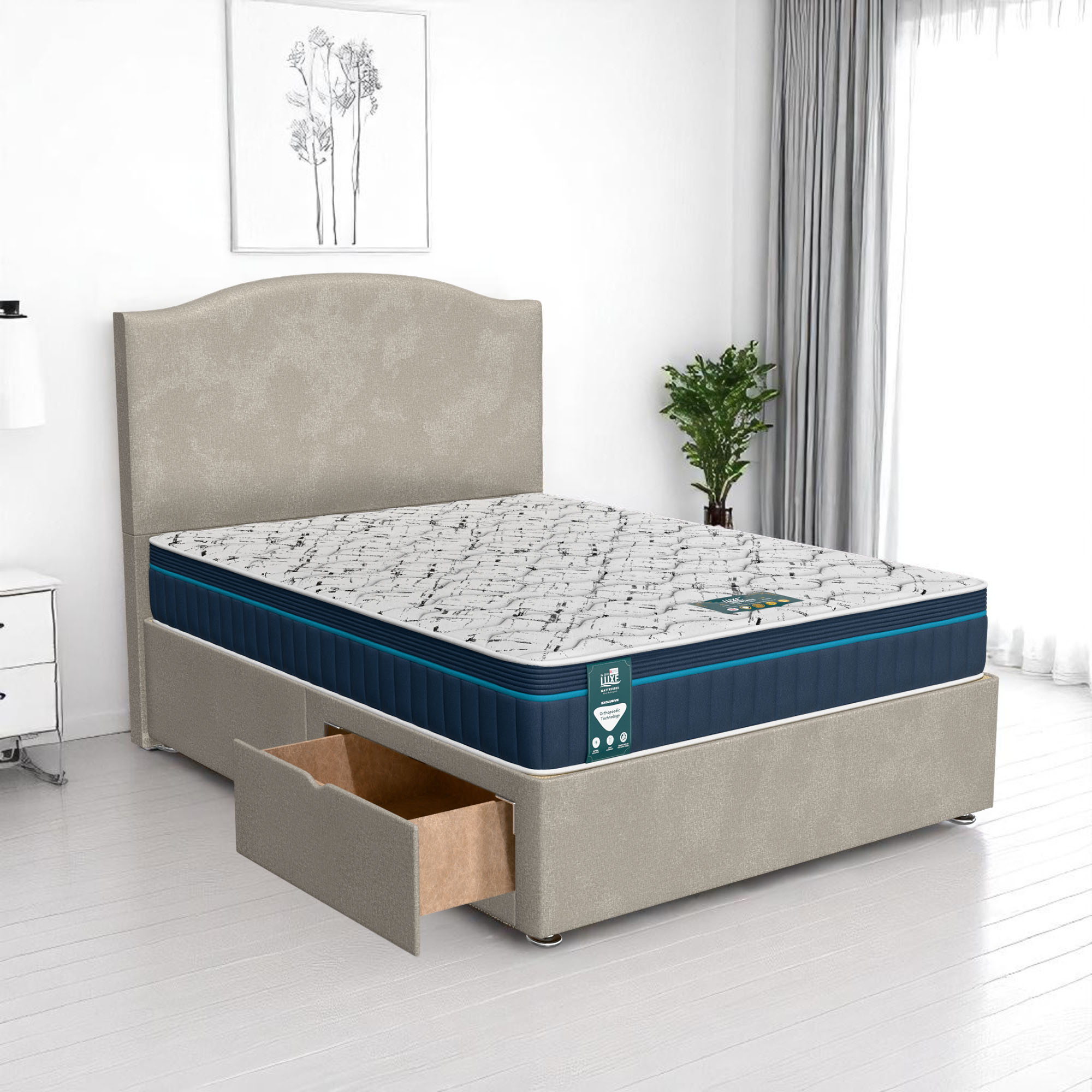 Available with up to four smooth-glide drawers, our divan beds offer practical hidden storage for bedding, towels, clothing, or seasonal items. The drawer system is engineered for easy opening and closing, maximising room space while keeping your bedroom organised and clutter-free.
