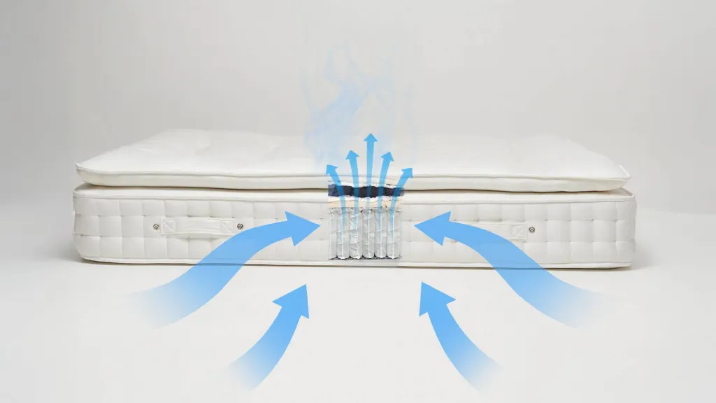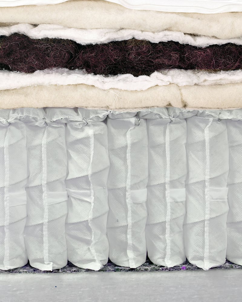 Premium British wool and cotton are used in multiple layers throughout the mattress to provide a naturally soft breathable and temperature-balanced surface. These materials wick away moisture and resist allergens making them perfect for year-round freshness and comfort.