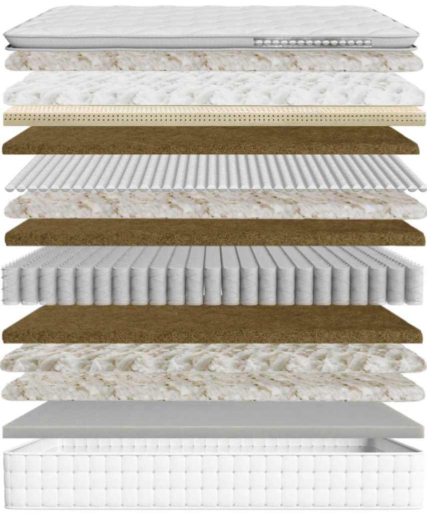 Under the comfort layers two layers of coir (coconut fiber) deliver firm base reinforcement and prevent sagging over time. Combined with the reflex foam foundation the mattress ensures structural integrity airflow and odor resistance all while keeping the core free of humidity buildup.