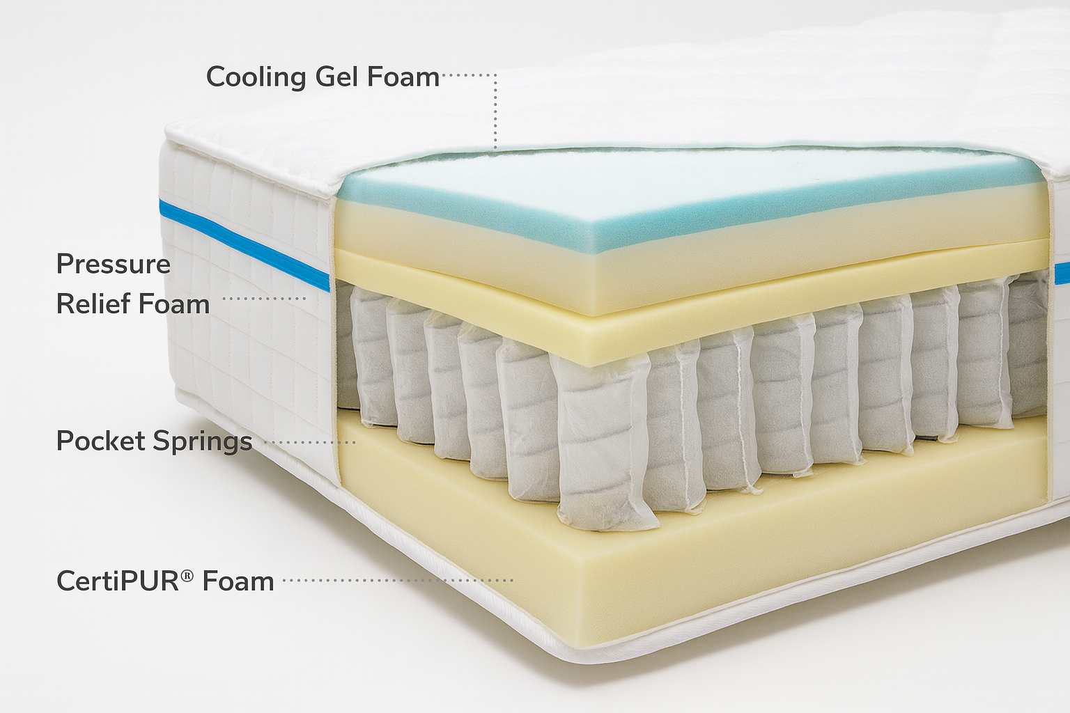 Beneath the surface, high-quality memory foam gently contours to the body, relieving pressure on key areas such as the shoulders, hips, and back. Unlike traditional foams that may feel rigid, the Luxe Velour Hybrid adapts naturally to your body shape while minimizing motion transfer, making it an excellent choice for couples.