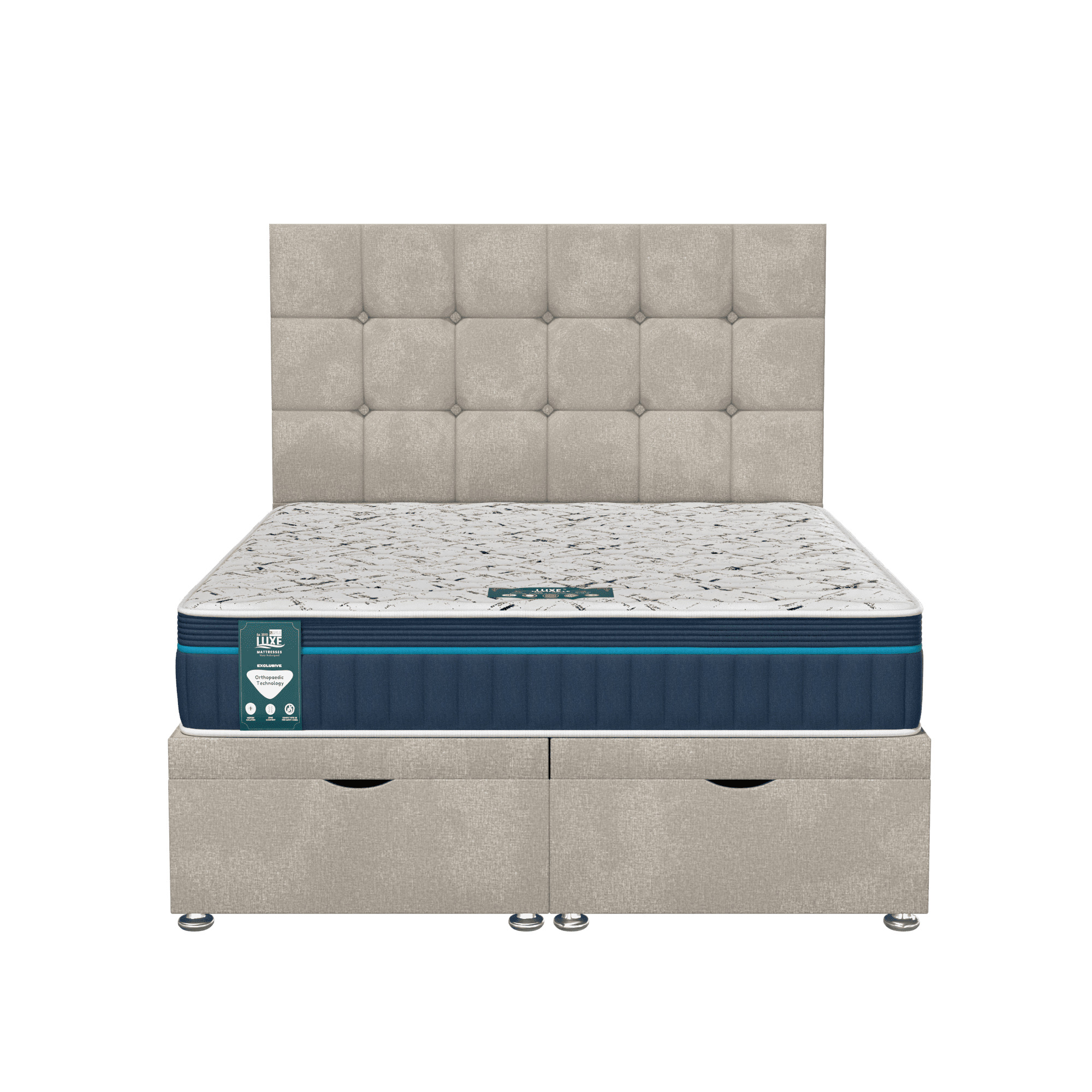 Our ottoman storage system features high-performance cylindrical auto-lift gas pistons, engineered for smooth, effortless lifting and closing. These mechanisms are rigorously tested for reliability and safety, ensuring easy access to storage with minimal effort. To demonstrate our confidence in the technology, all lift cylinders come with a full 5-year warranty, protecting your investment and guaranteeing long-term performance. Whether the mattress is light or heavy, the system remains secure, controlled, and simple to operate.
