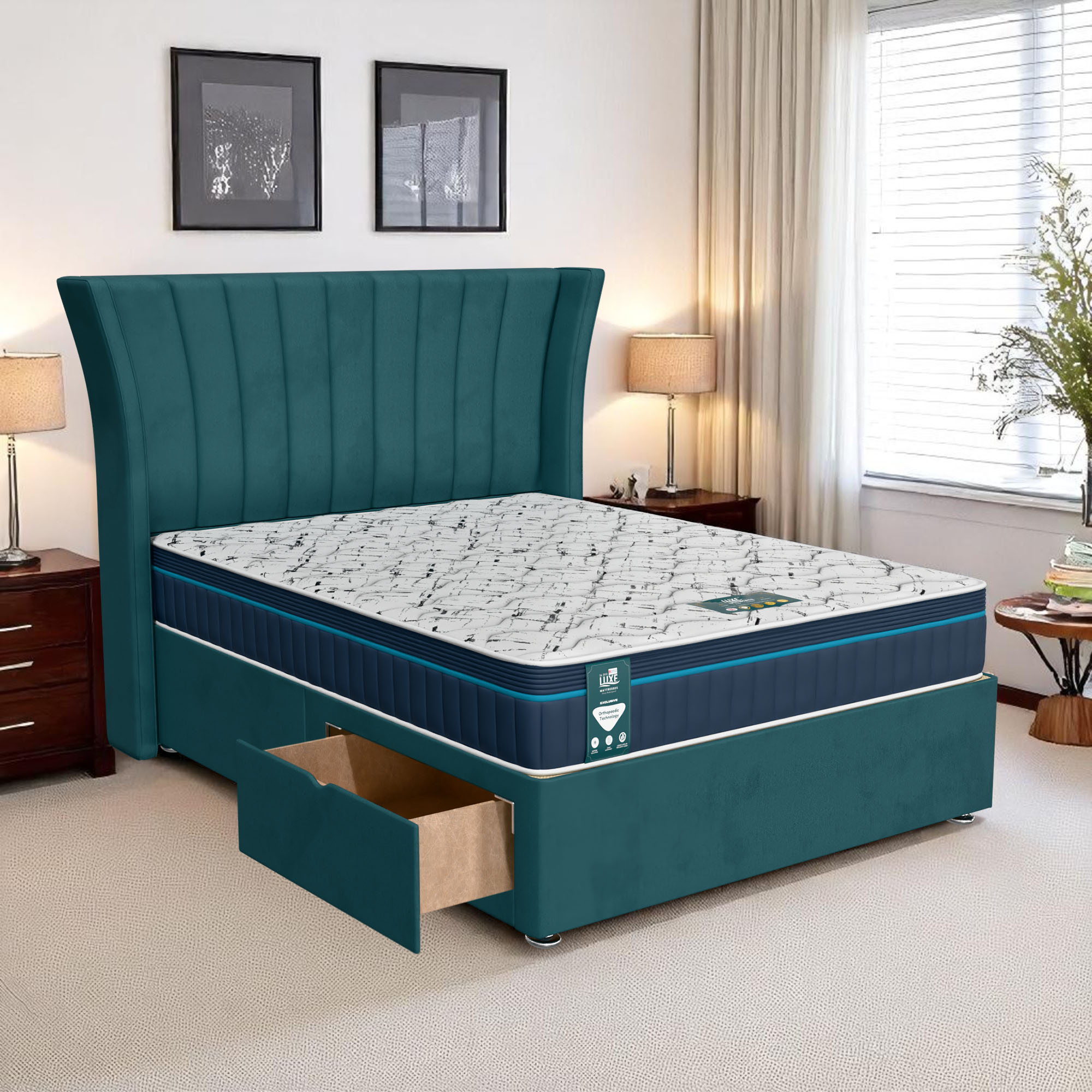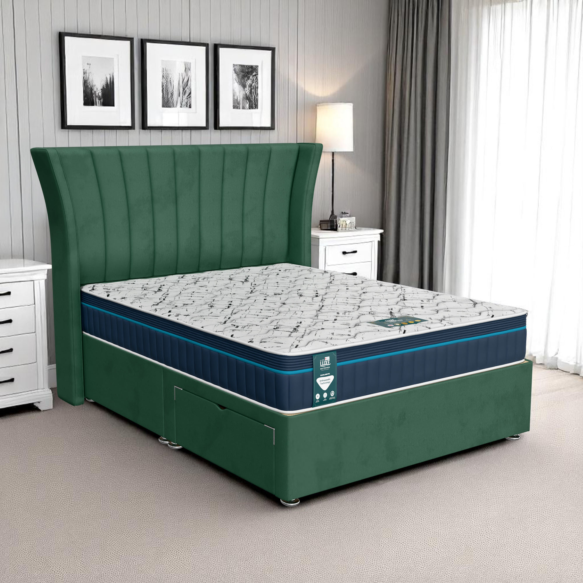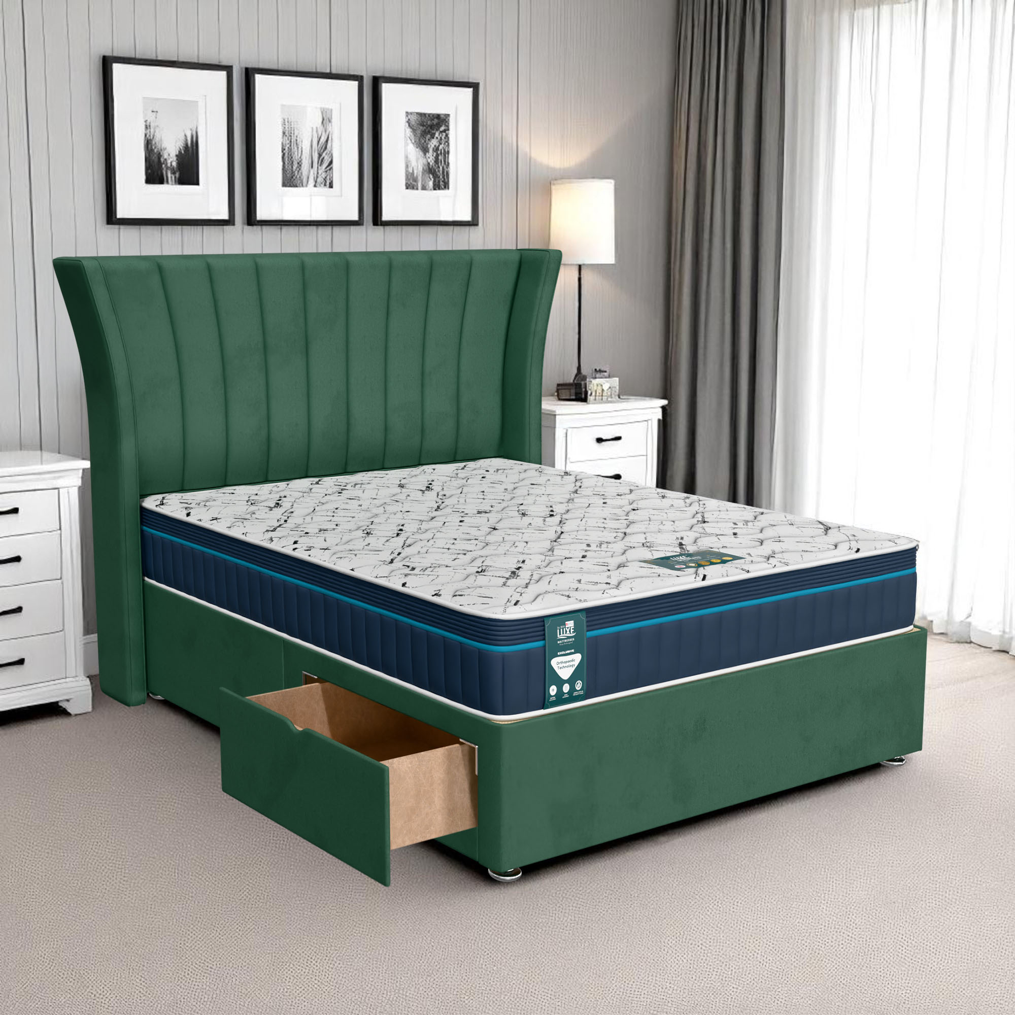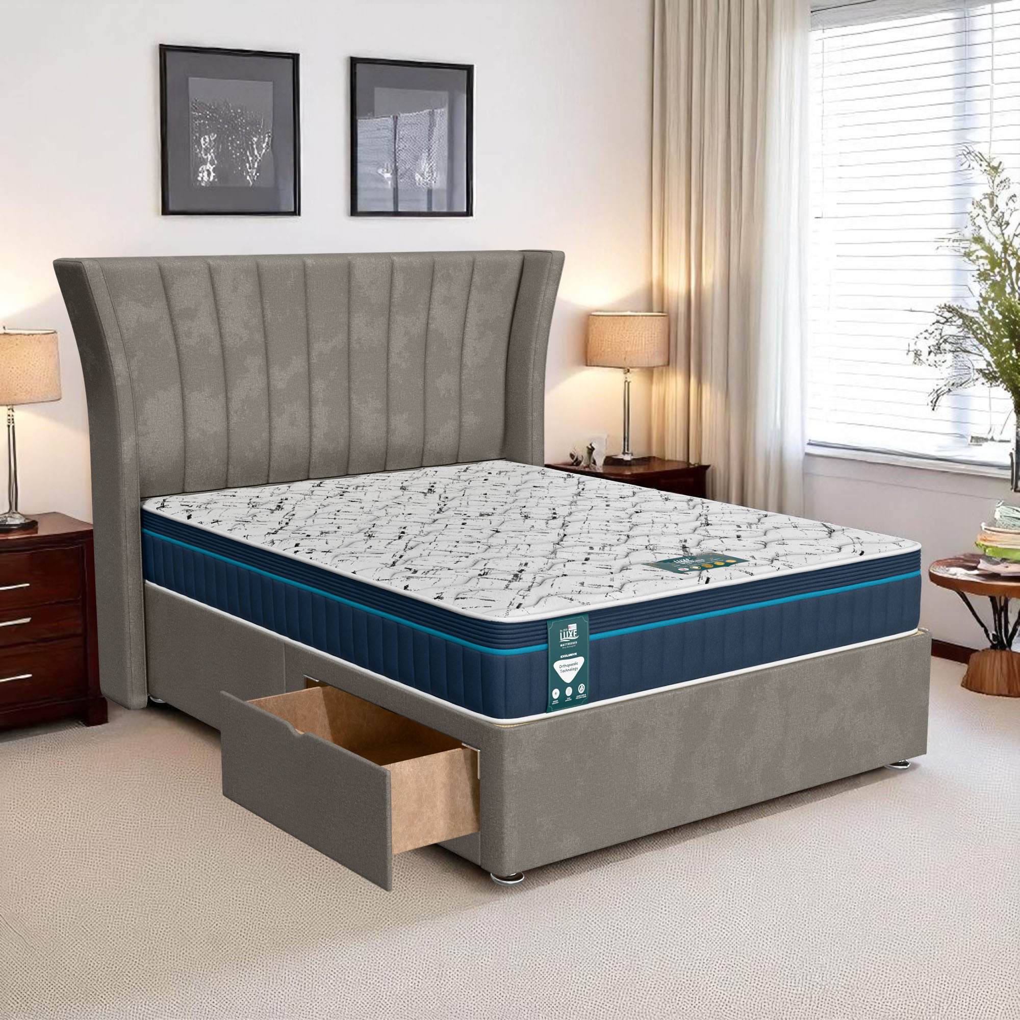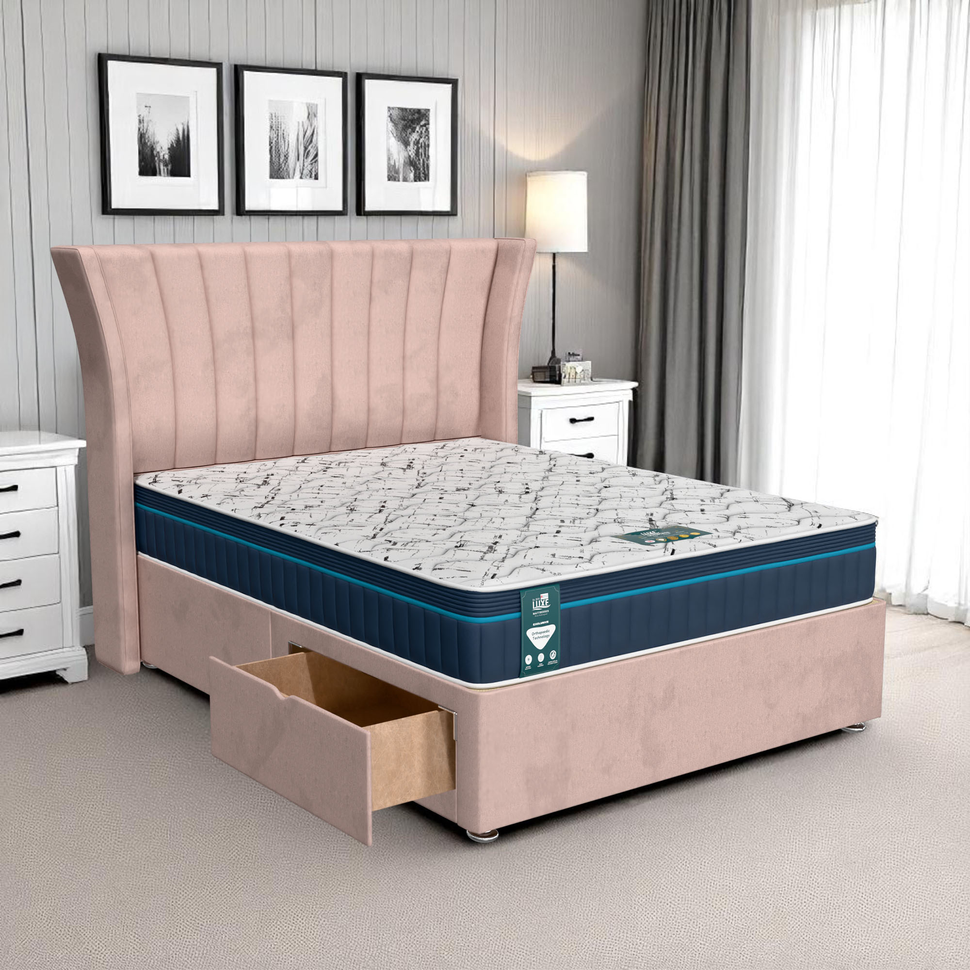 Available with up to four smooth-glide drawers, our divan beds offer practical hidden storage for bedding, towels, clothing, or seasonal items. The drawer system is engineered for easy opening and closing, maximising room space while keeping your bedroom organised and clutter-free.