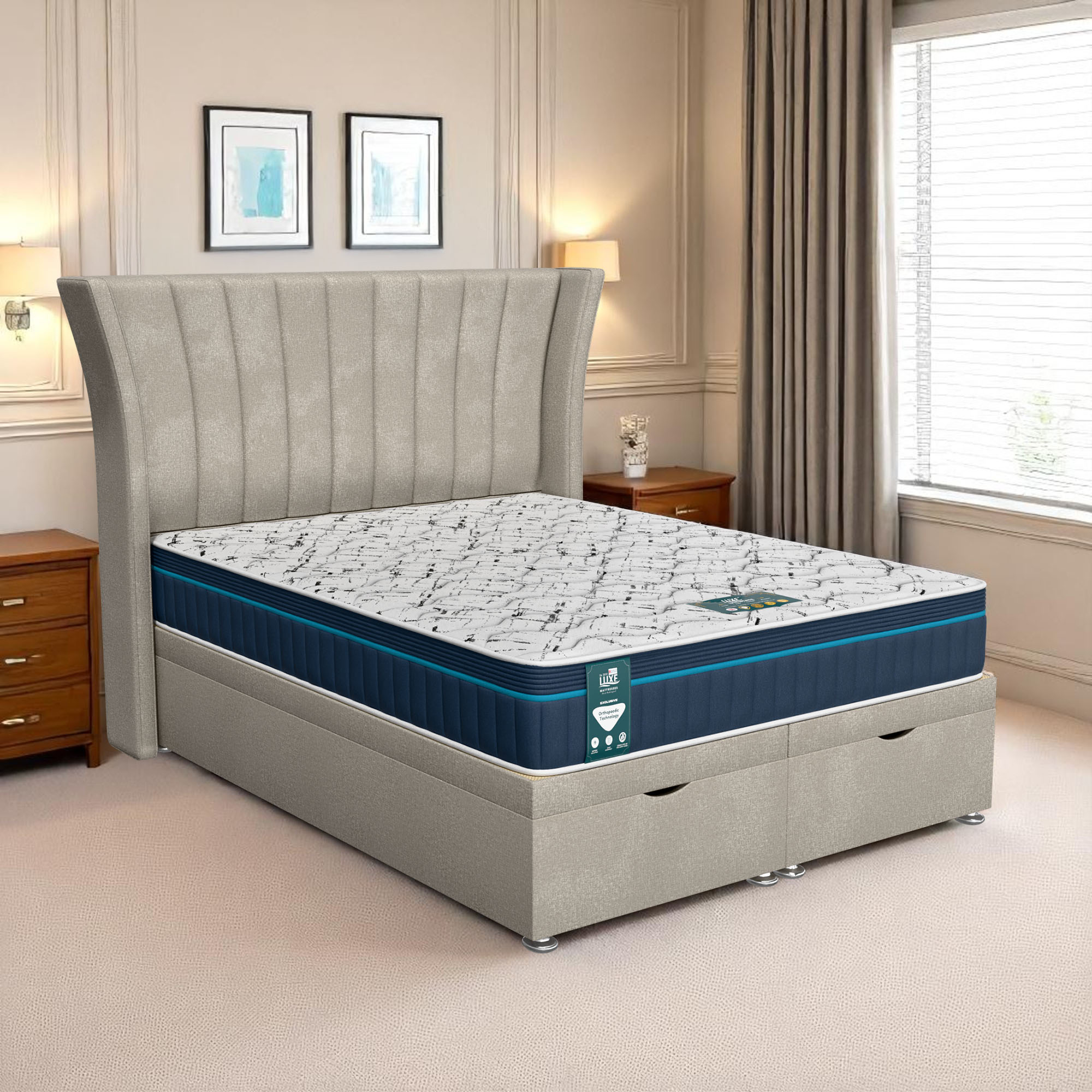 Our ottoman storage system features high-performance cylindrical auto-lift gas pistons, engineered for smooth, effortless lifting and closing. These mechanisms are rigorously tested for reliability and safety, ensuring easy access to storage with minimal effort. To demonstrate our confidence in the technology, all lift cylinders come with a full 5-year warranty, protecting your investment and guaranteeing long-term performance. Whether the mattress is light or heavy, the system remains secure, controlled, and simple to operate.