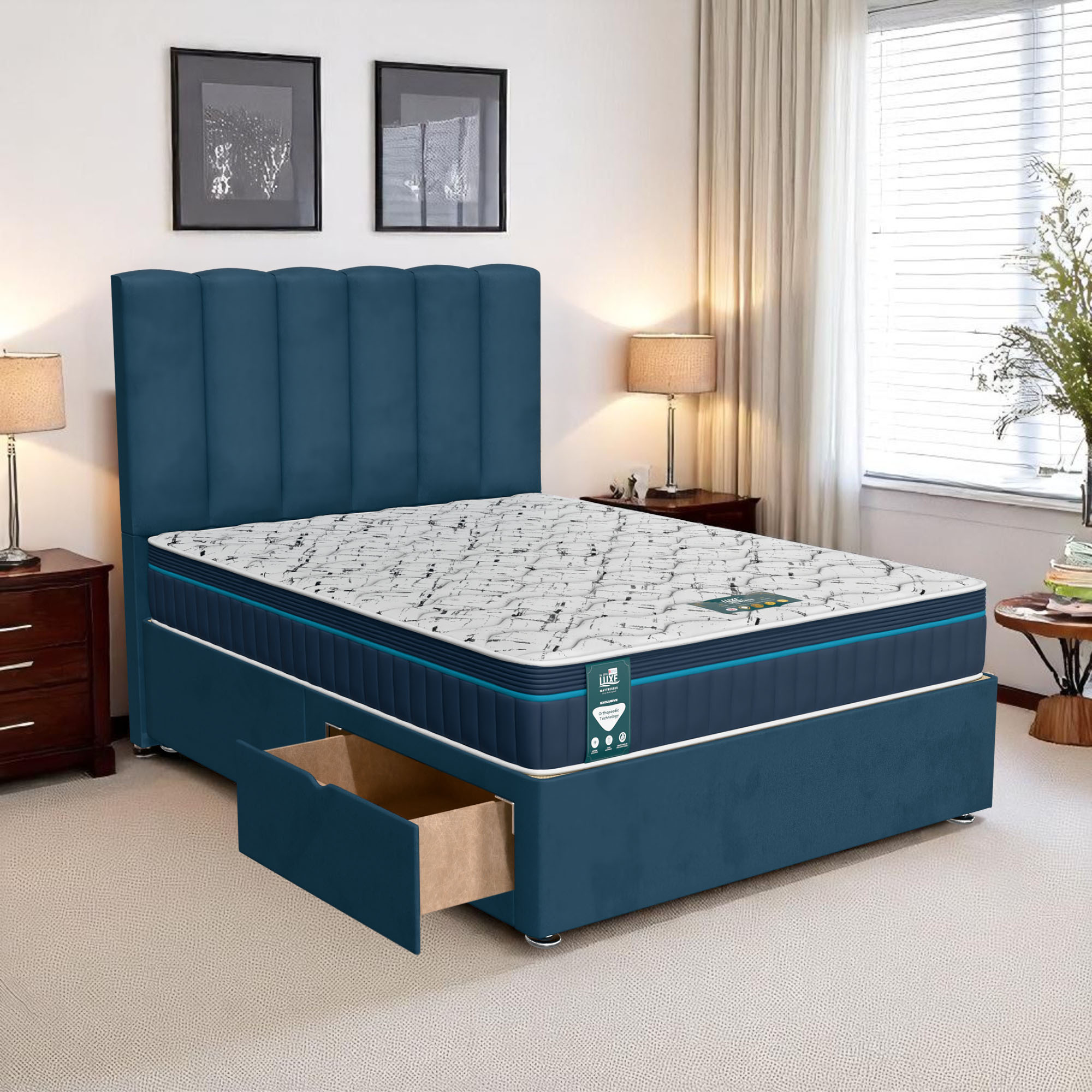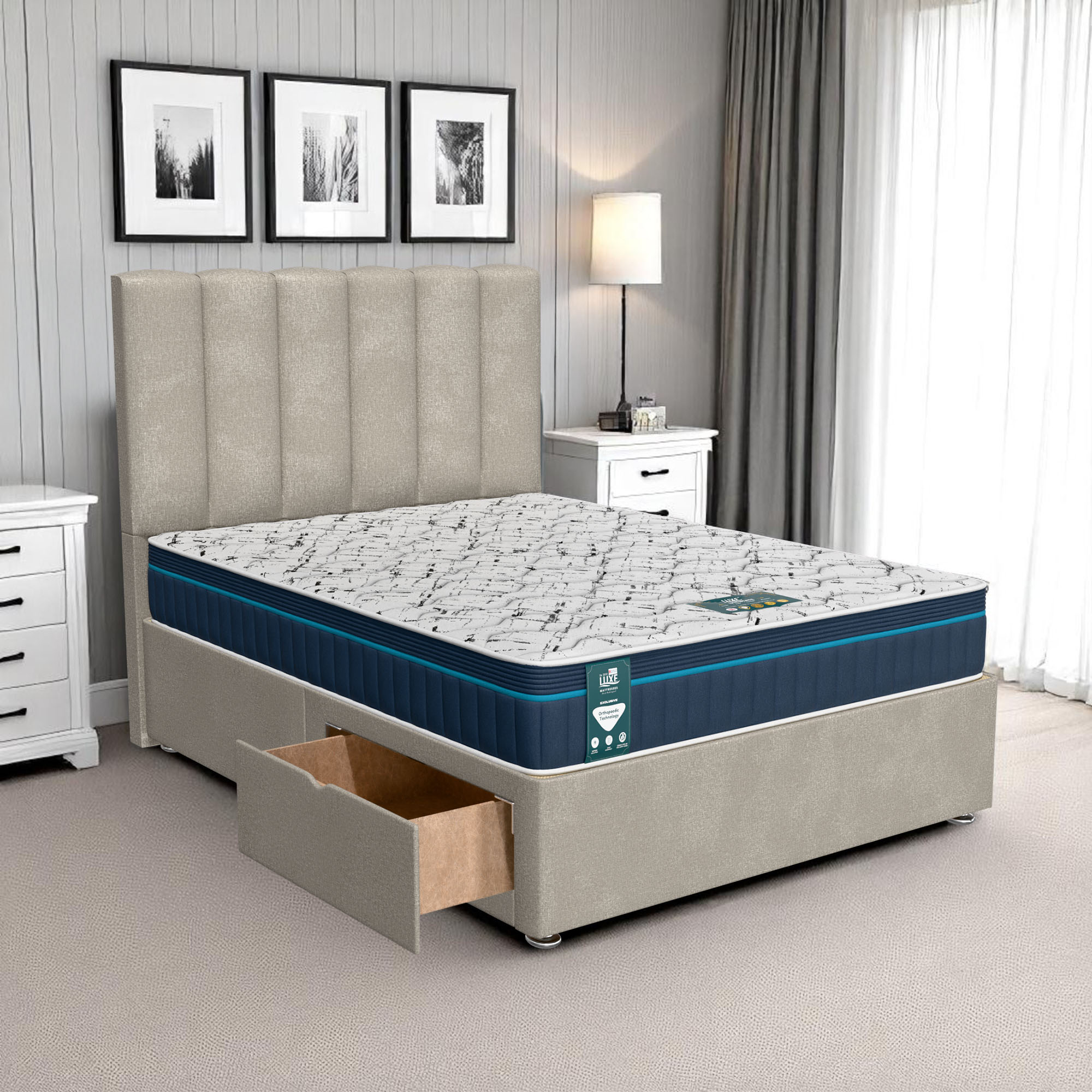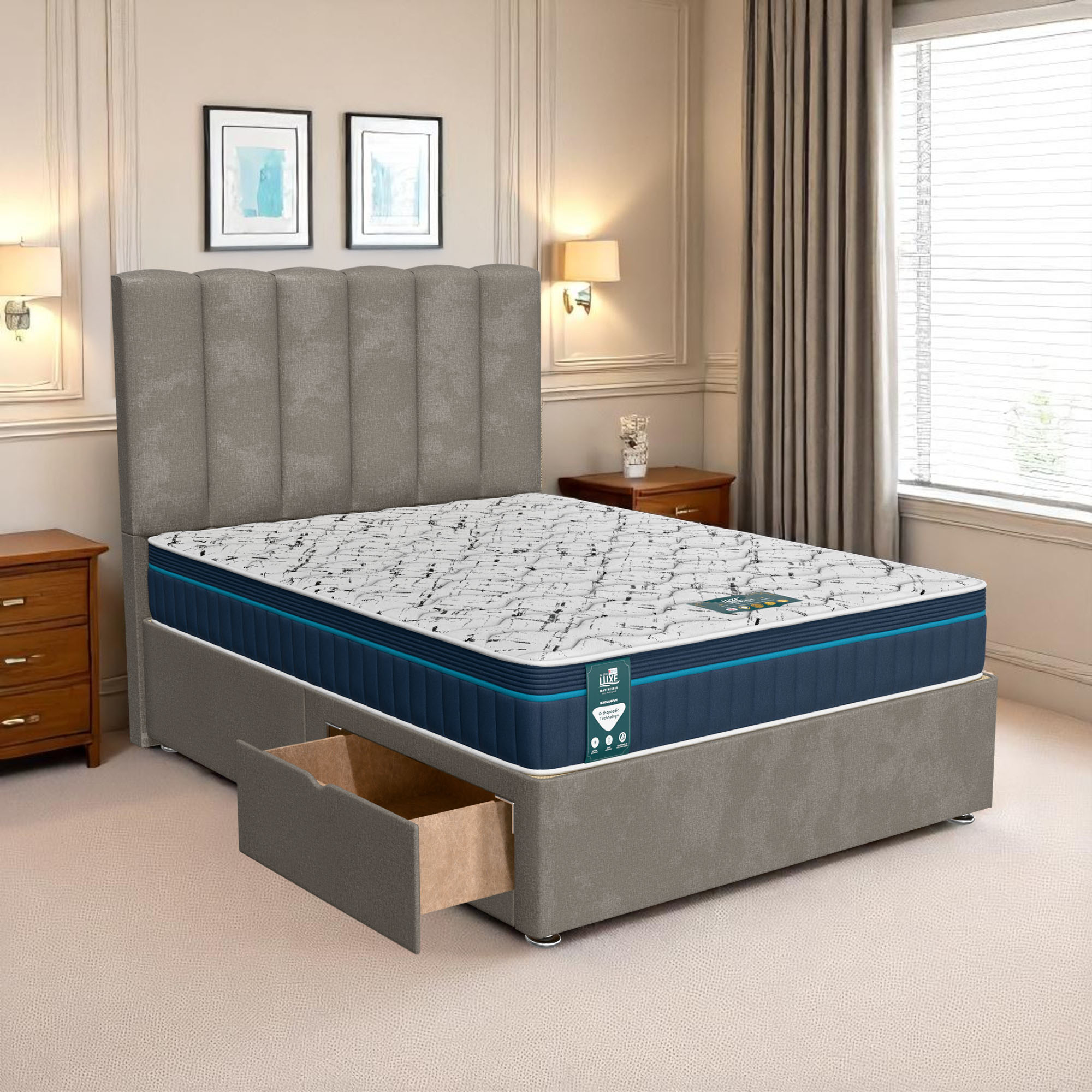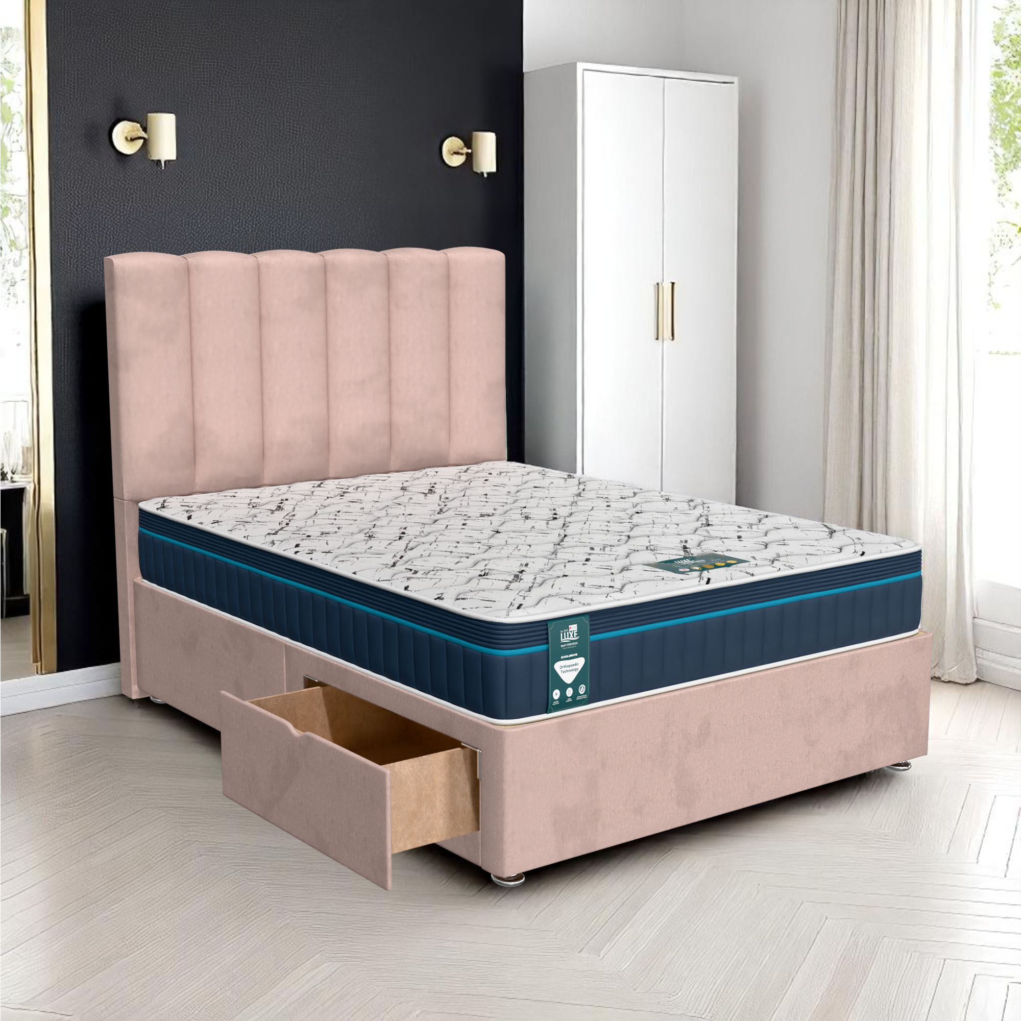 Available with up to four smooth-glide drawers, our divan beds offer practical hidden storage for bedding, towels, clothing, or seasonal items. The drawer system is engineered for easy opening and closing, maximising room space while keeping your bedroom organised and clutter-free.