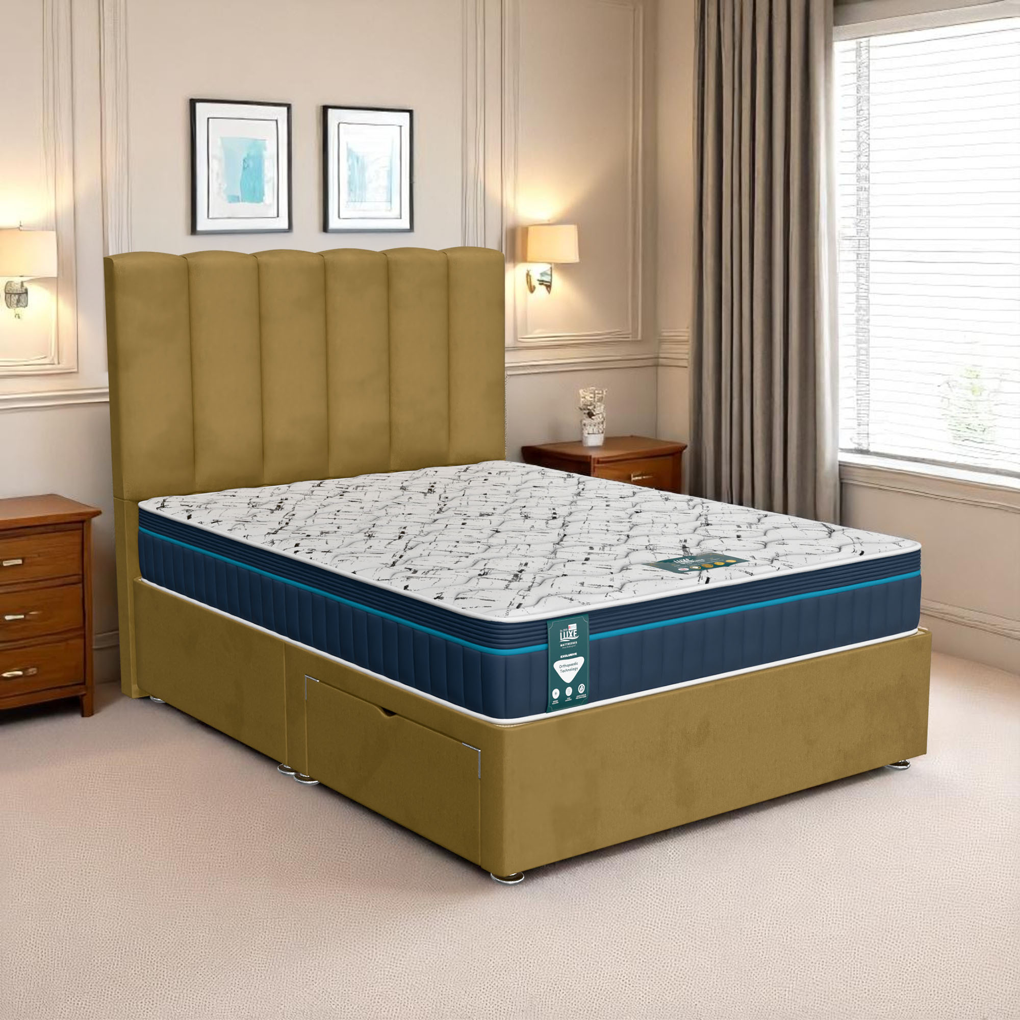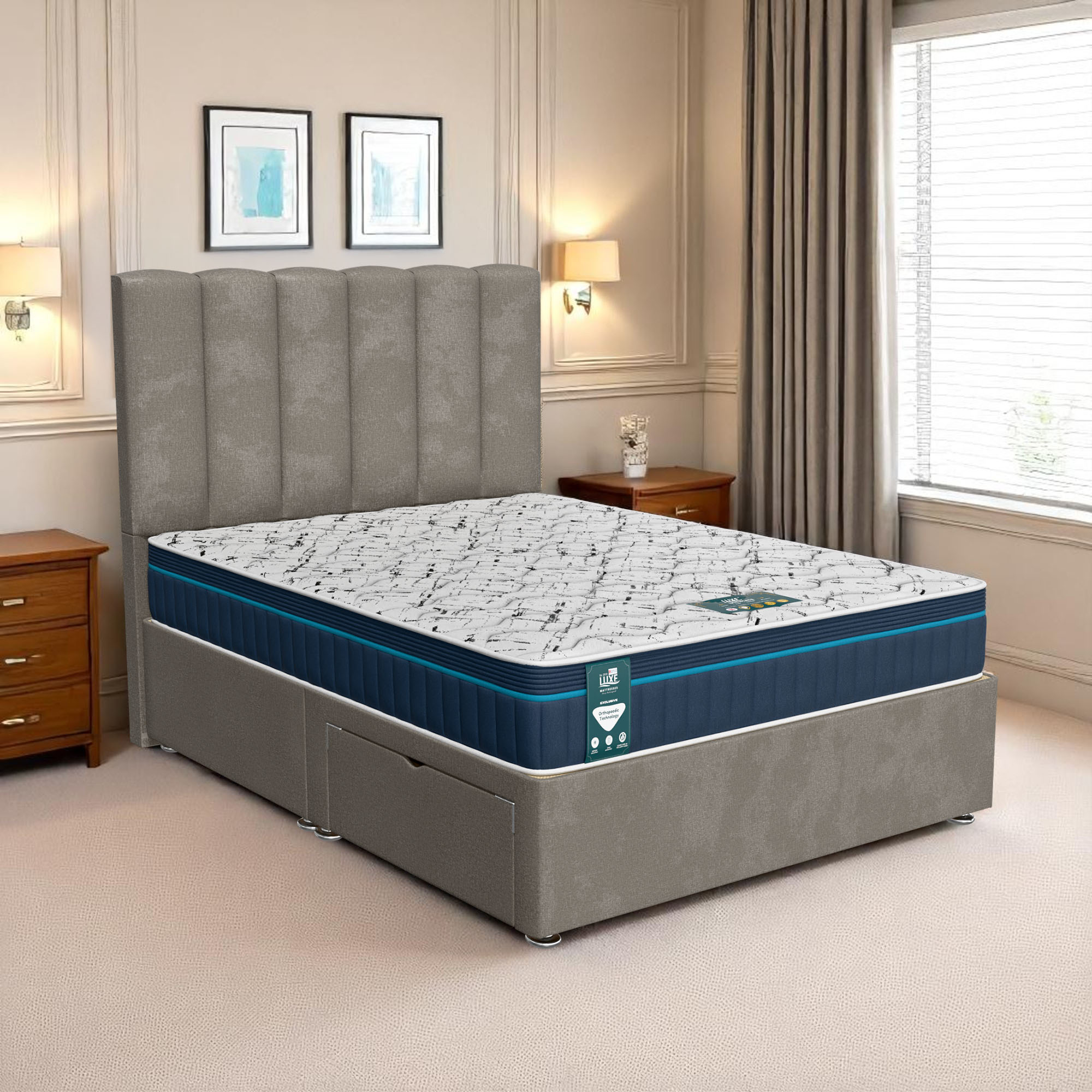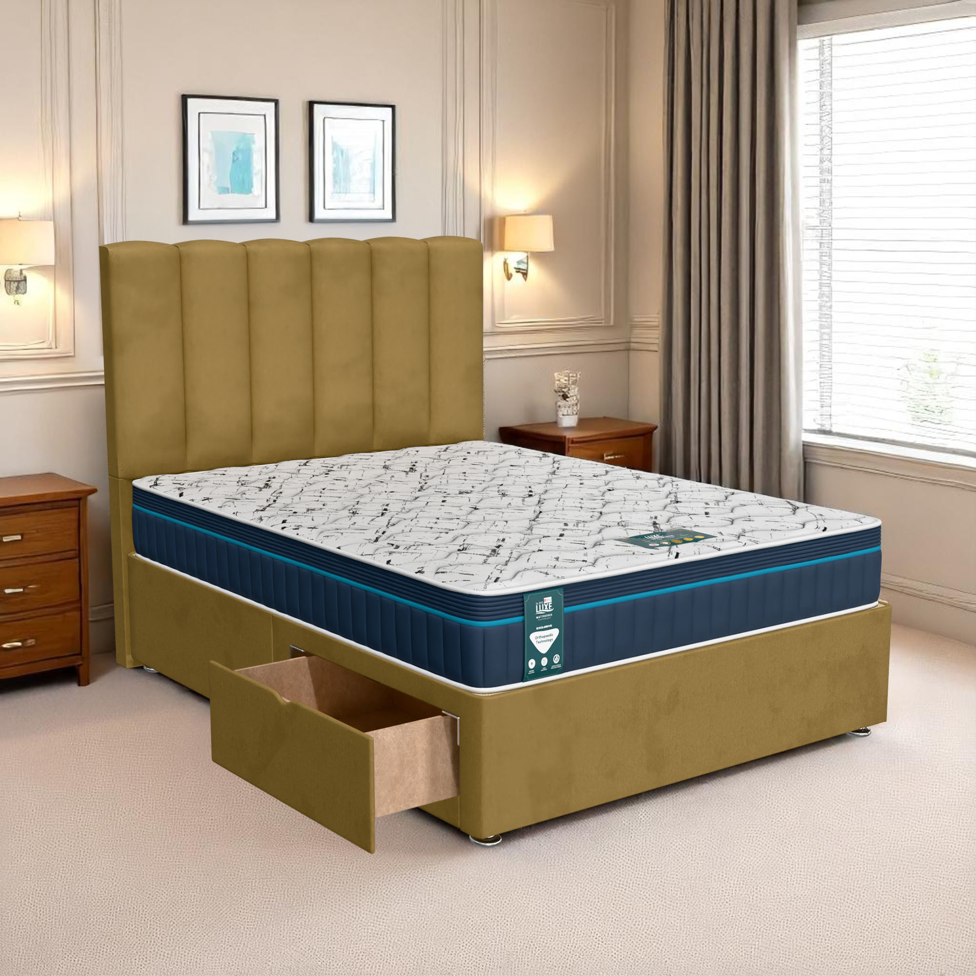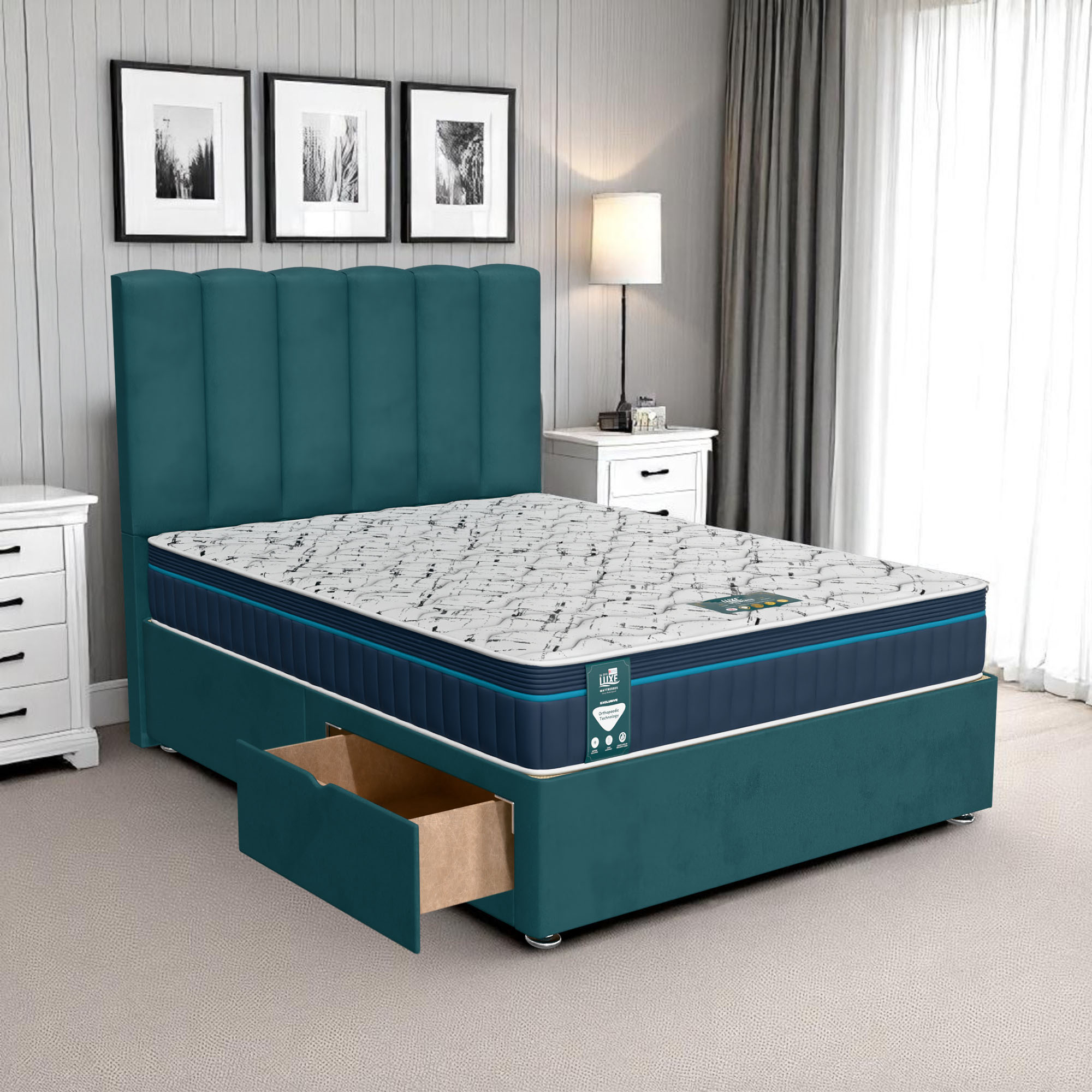 Available with up to four smooth-glide drawers, our divan beds offer practical hidden storage for bedding, towels, clothing, or seasonal items. The drawer system is engineered for easy opening and closing, maximising room space while keeping your bedroom organised and clutter-free.