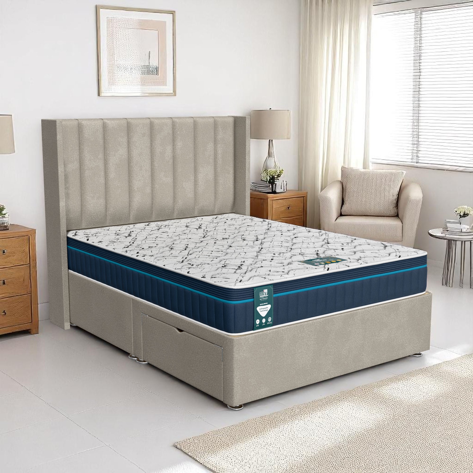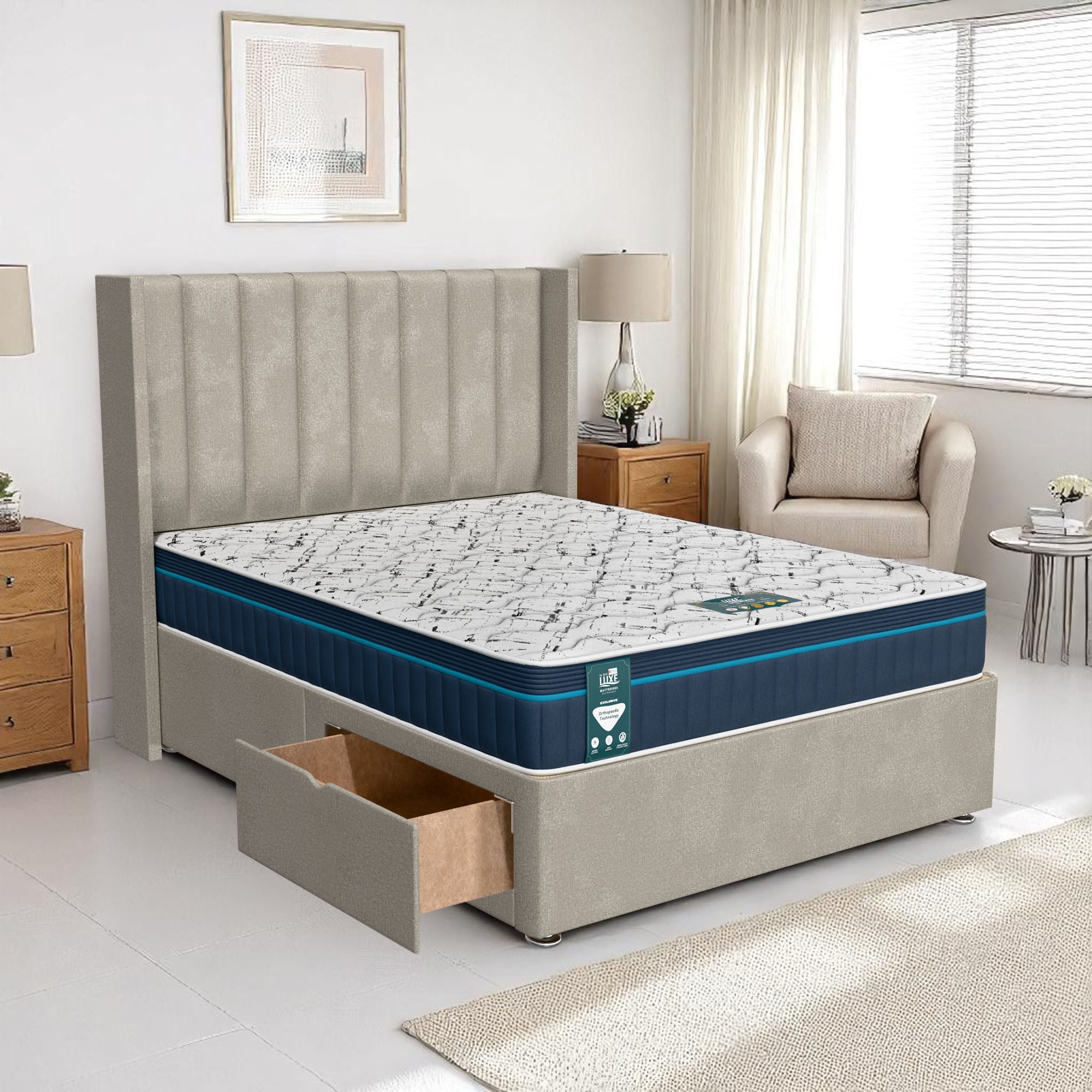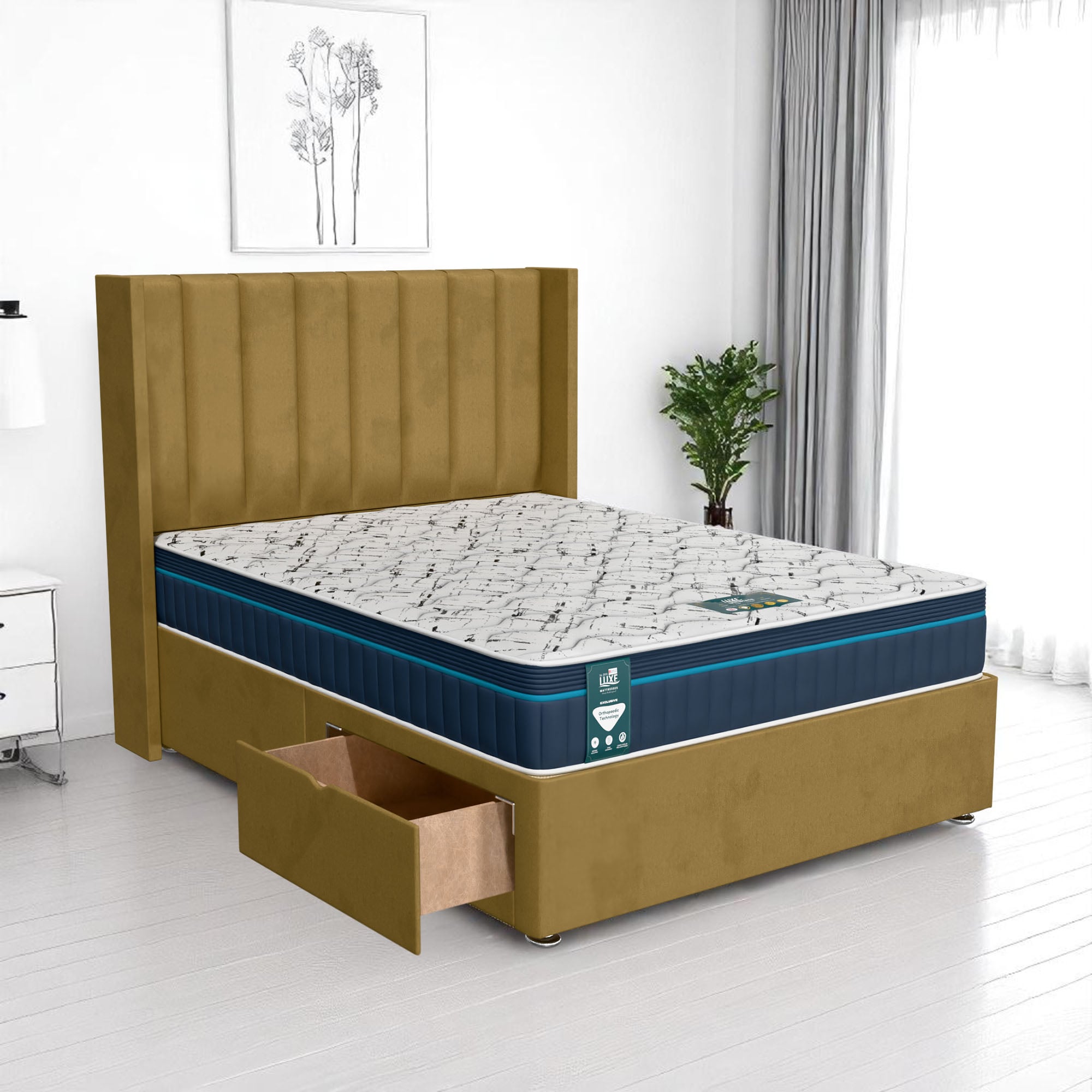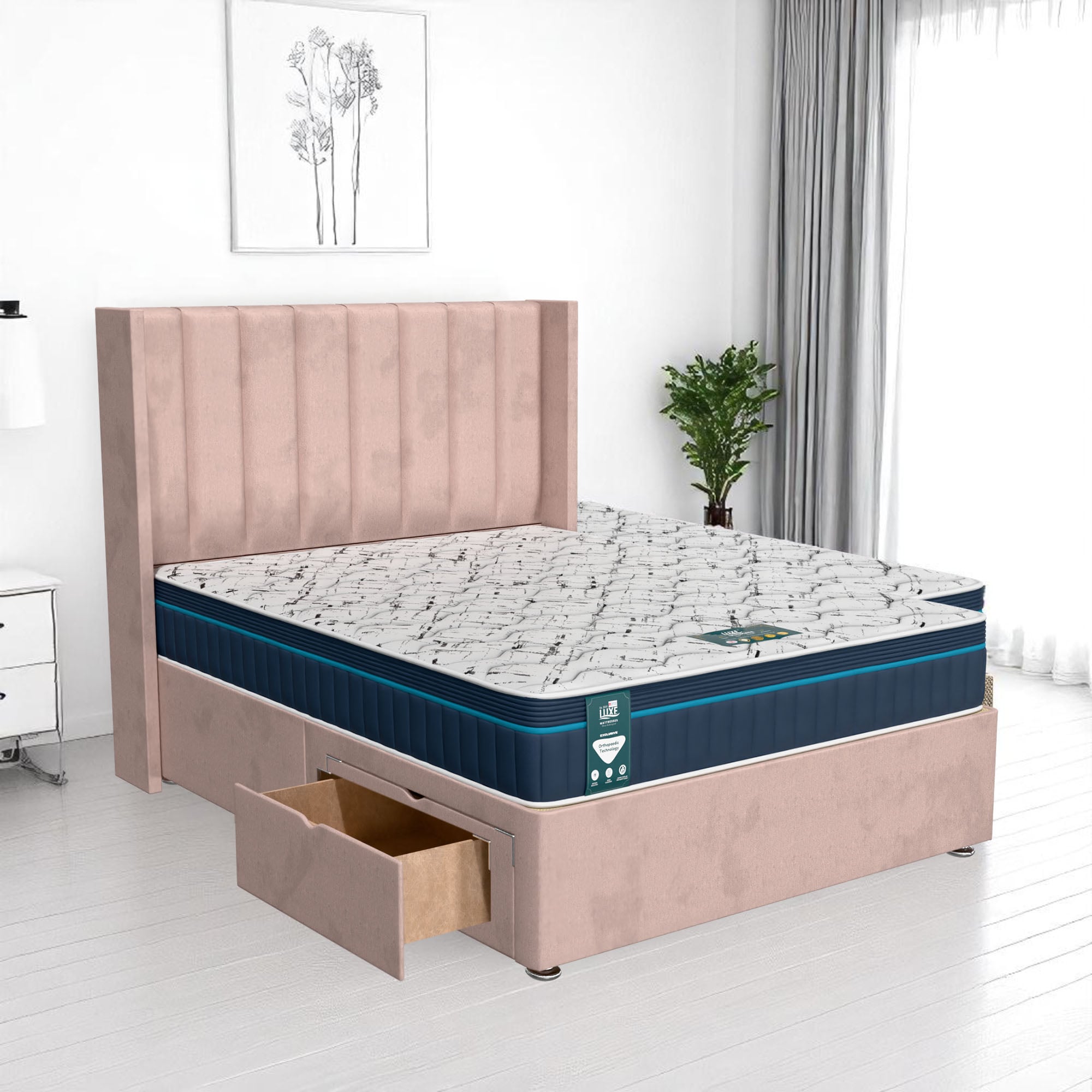Available with up to four smooth-glide drawers, our divan beds offer practical hidden storage for bedding, towels, clothing, or seasonal items. The drawer system is engineered for easy opening and closing, maximising room space while keeping your bedroom organised and clutter-free.