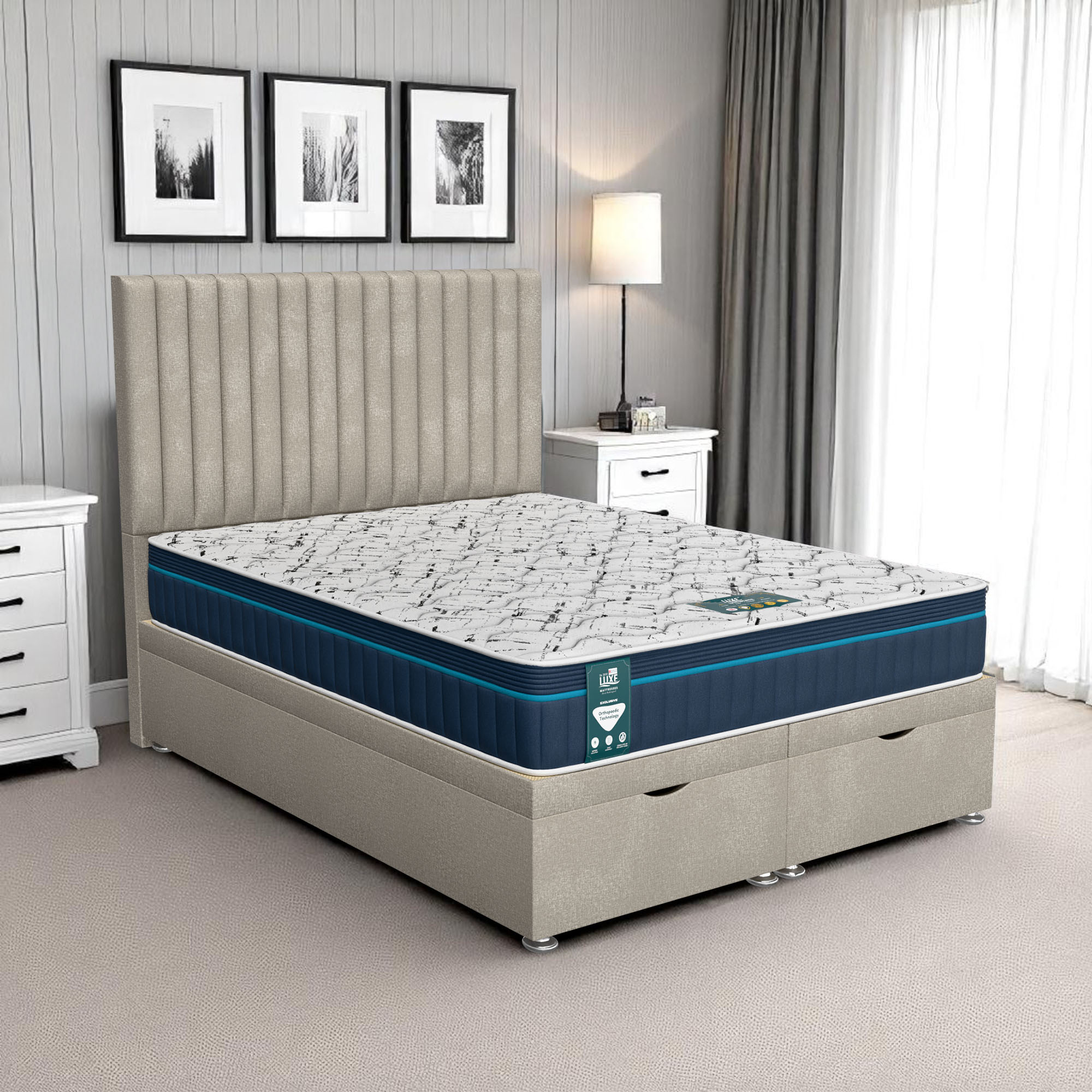 Our ottoman storage system features high-performance cylindrical auto-lift gas pistons, engineered for smooth, effortless lifting and closing. These mechanisms are rigorously tested for reliability and safety, ensuring easy access to storage with minimal effort. To demonstrate our confidence in the technology, all lift cylinders come with a full 5-year warranty, protecting your investment and guaranteeing long-term performance. Whether the mattress is light or heavy, the system remains secure, controlled, and simple to operate.