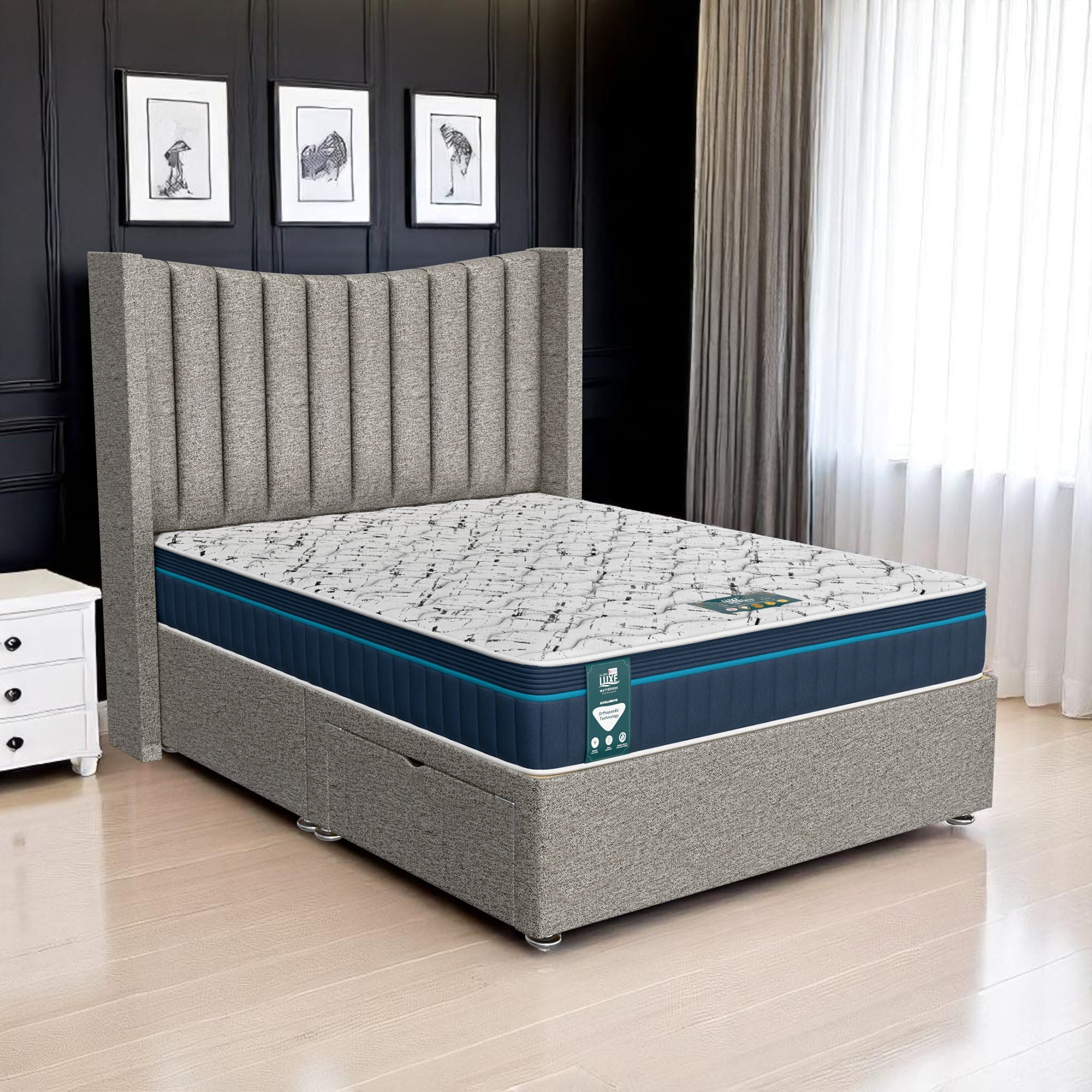Built with premium materials and expert craftsmanship, the Naples Chesterfield Curved Wings Divan is designed for long-lasting comfort and durability. Luxe Mattress stands behind the quality of this bed, offering a 5-year warranty that ensures your investment is protected. You can rest easy knowing that your bed will maintain its performance and appearance for years to come.
