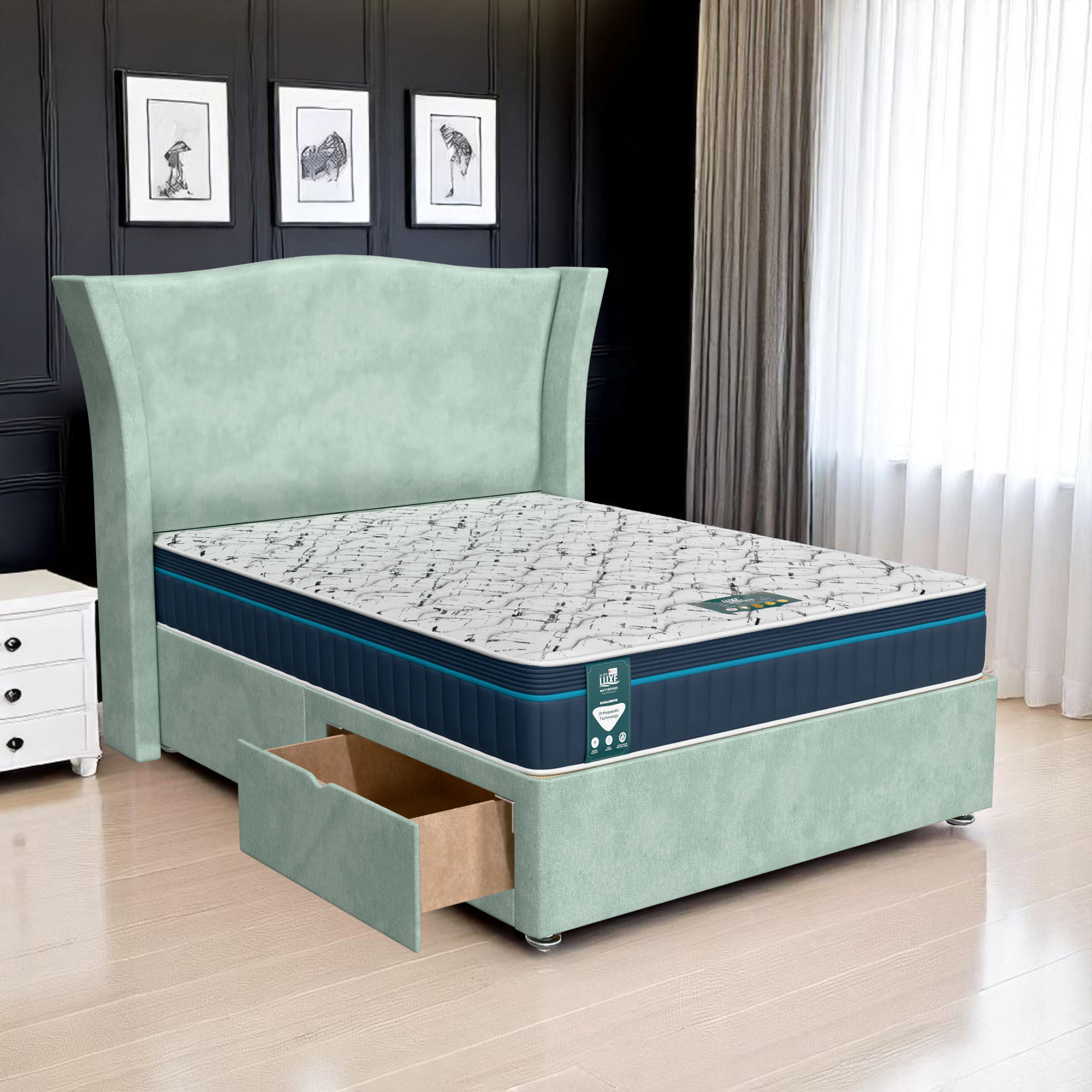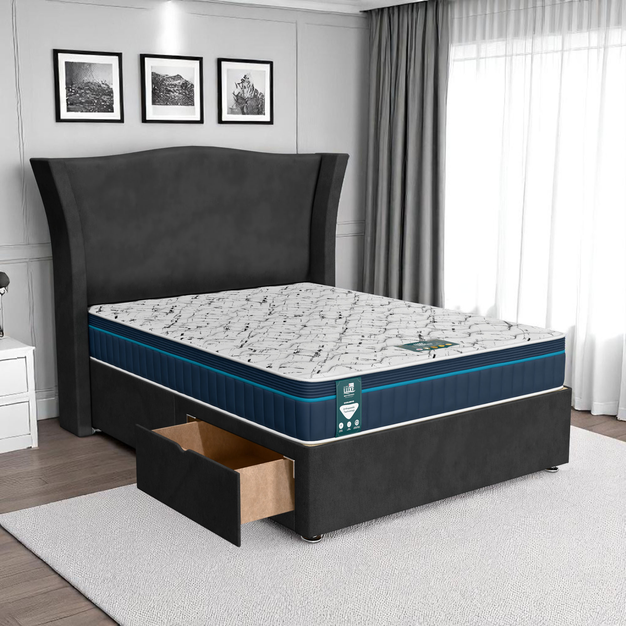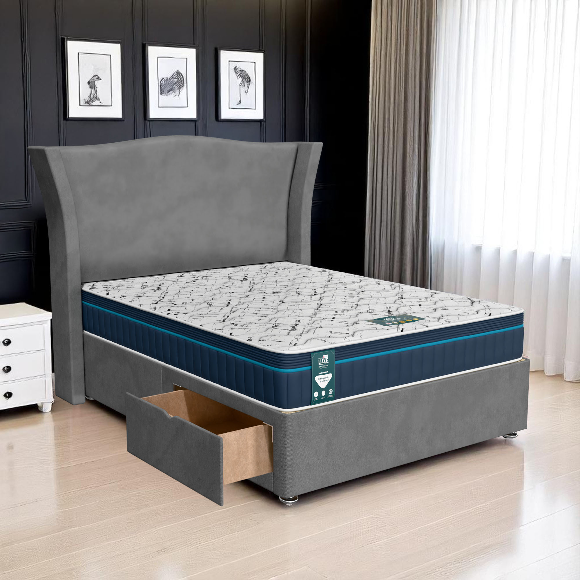 Available with up to four smooth-glide drawers, our divan beds offer practical hidden storage for bedding, towels, clothing, or seasonal items. The drawer system is engineered for easy opening and closing, maximising room space while keeping your bedroom organised and clutter-free.