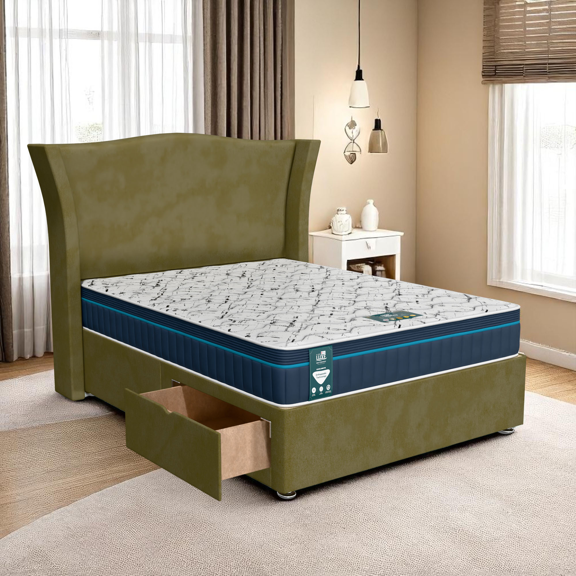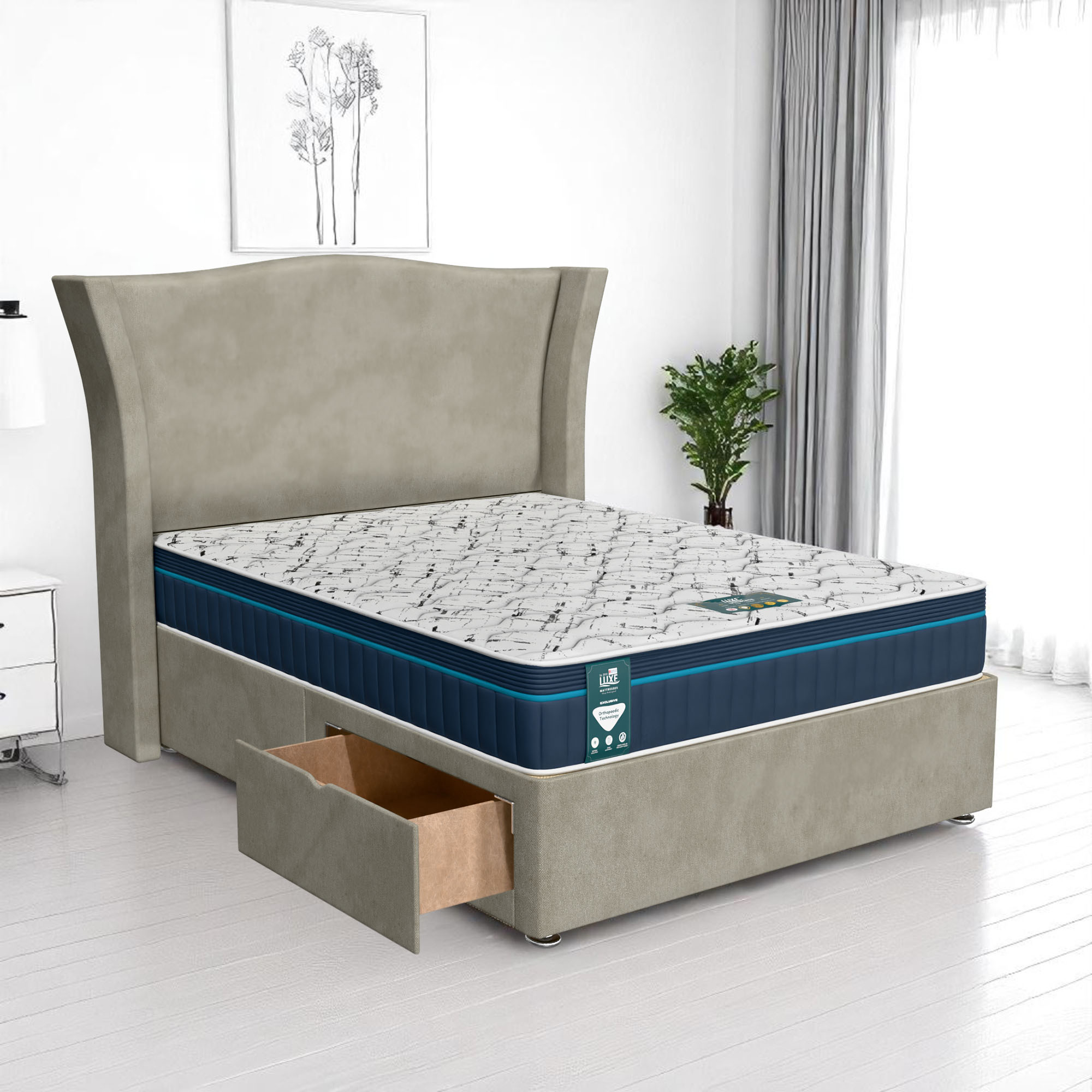 The Venice Maxcoil Divan brings a perfect balance of style, luxury, and practical storage to your bedroom. Expertly crafted for comfort and durability, this premium divan bed offers both aesthetic appeal and functional design. With versatile storage options and a wide range of customization, the Venice Maxcoil Divan Bed is the ideal choice for those looking to maximize both style and space.