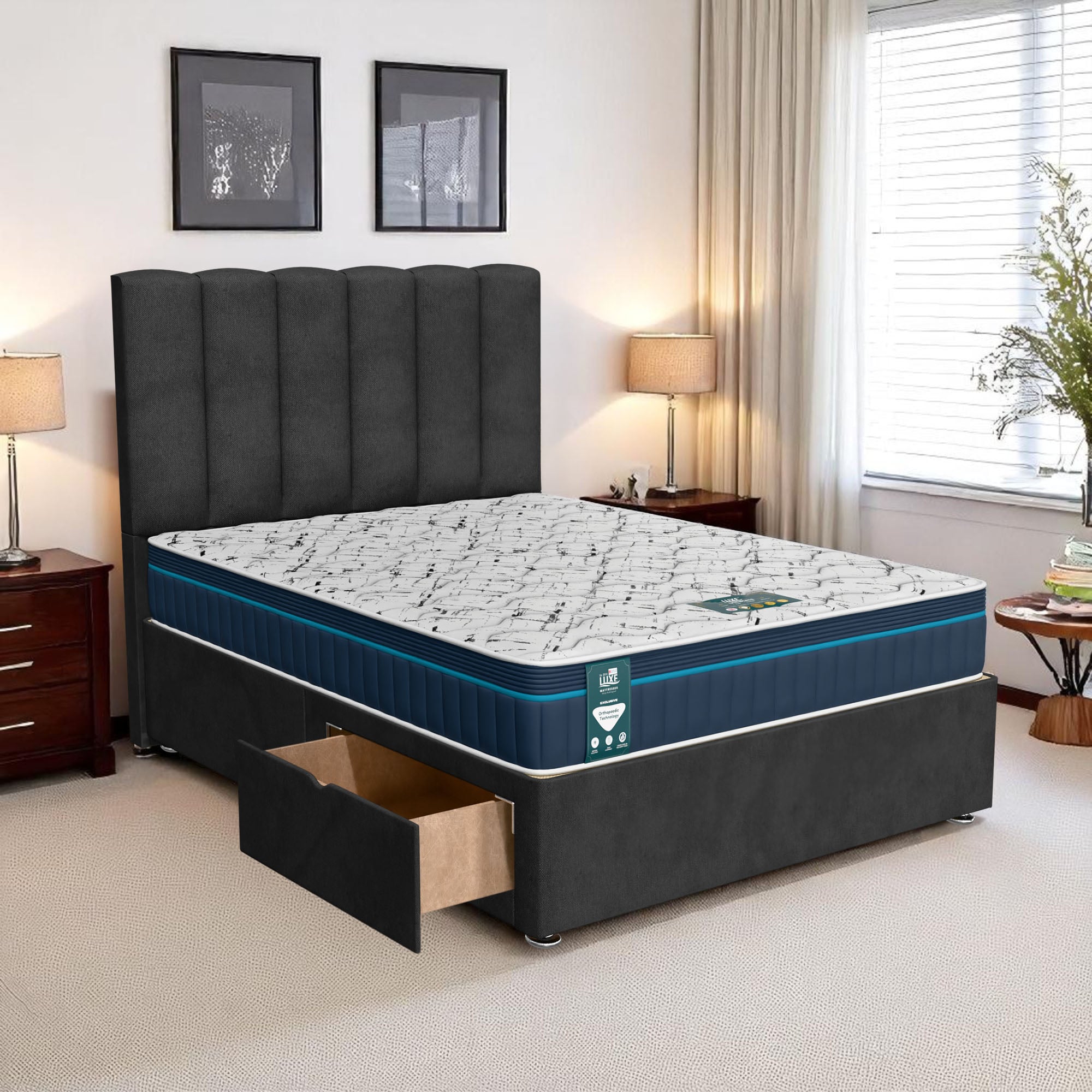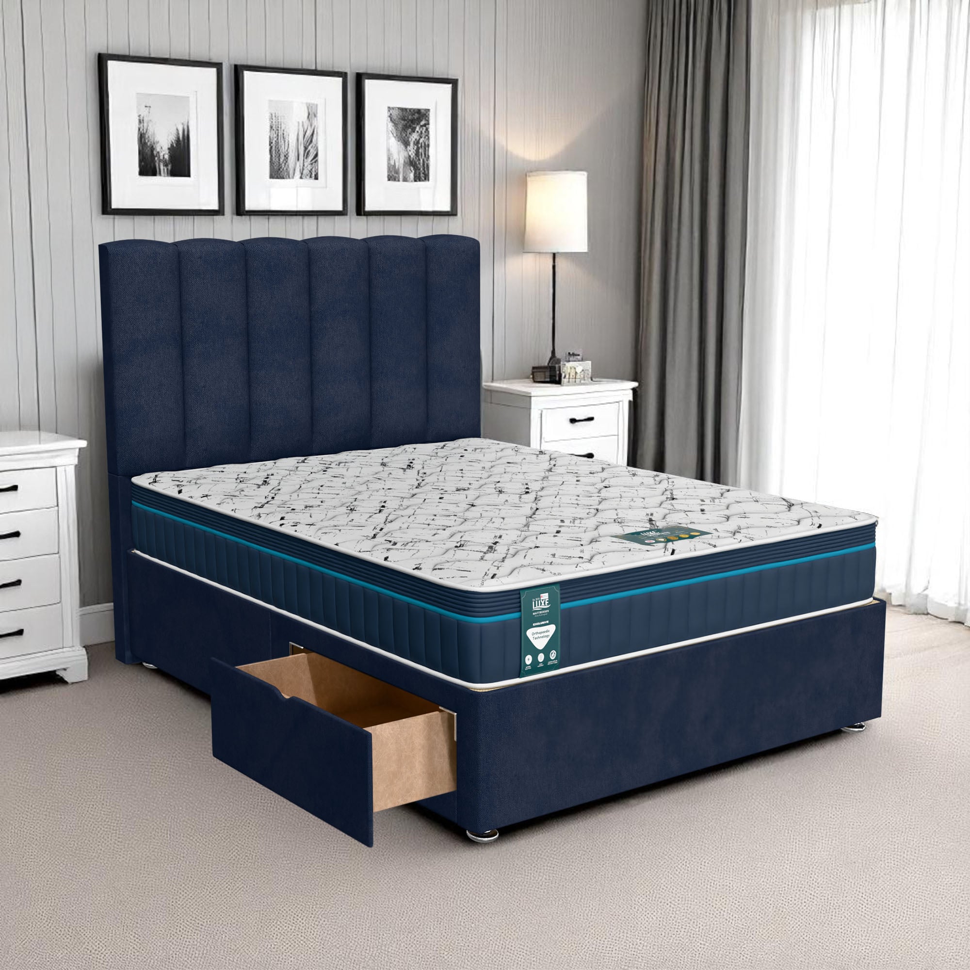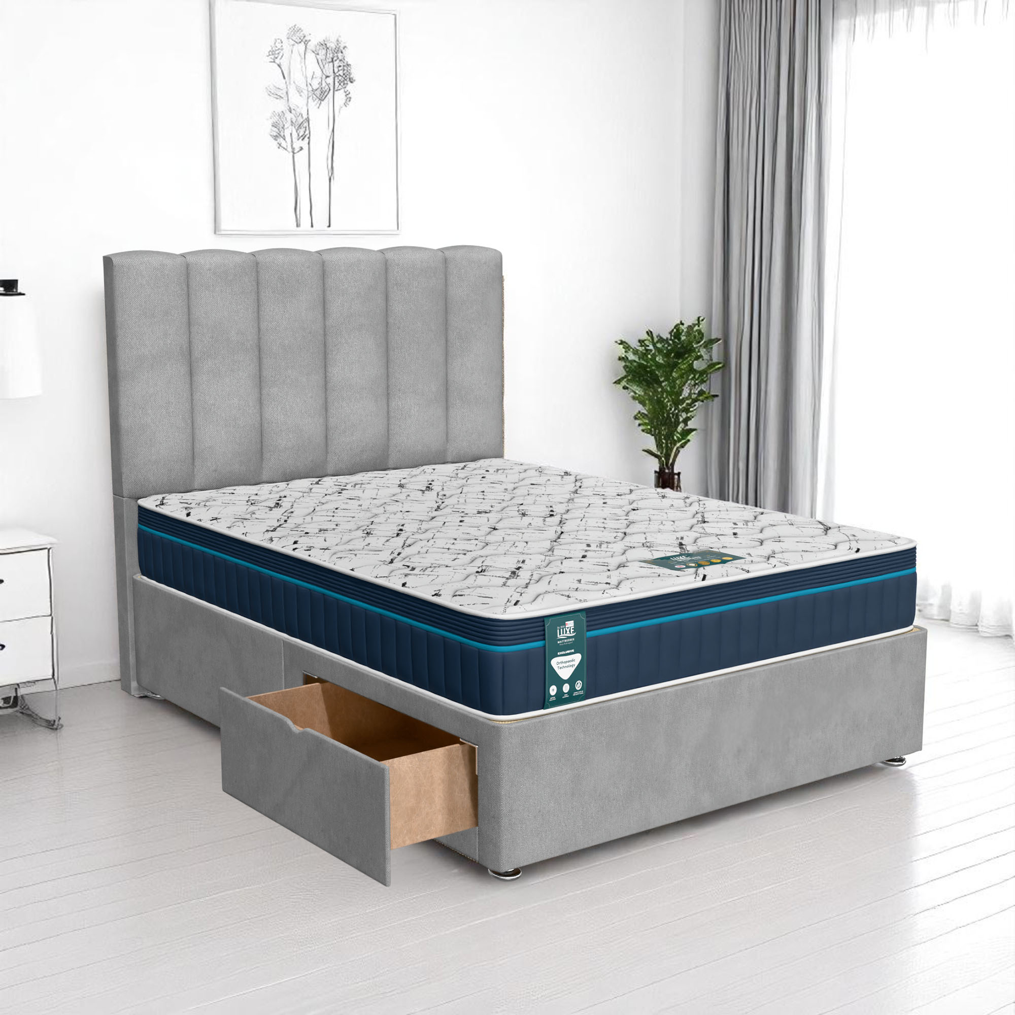Available with up to four smooth-glide drawers, our divan beds offer practical hidden storage for bedding, towels, clothing, or seasonal items. The drawer system is engineered for easy opening and closing, maximising room space while keeping your bedroom organised and clutter-free.