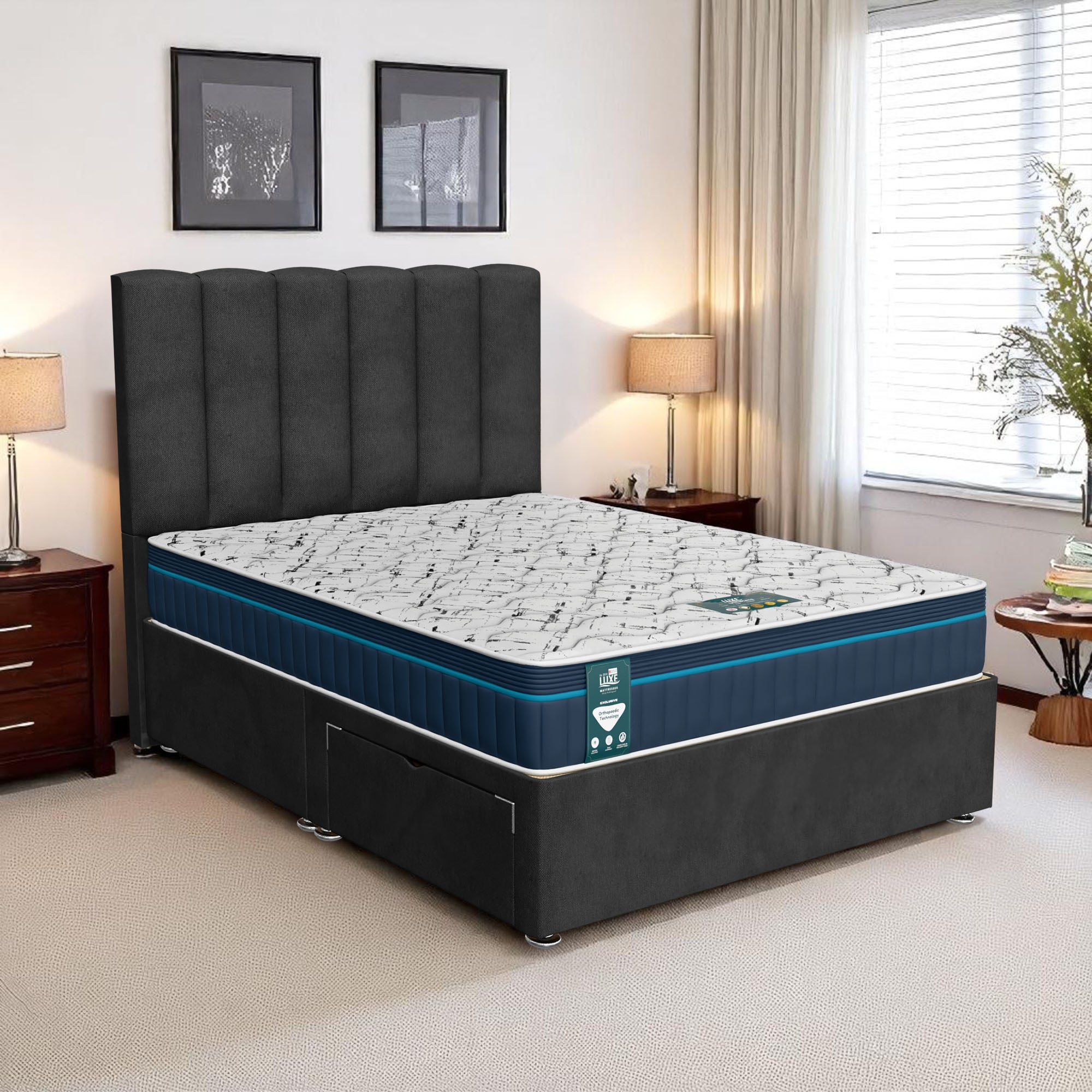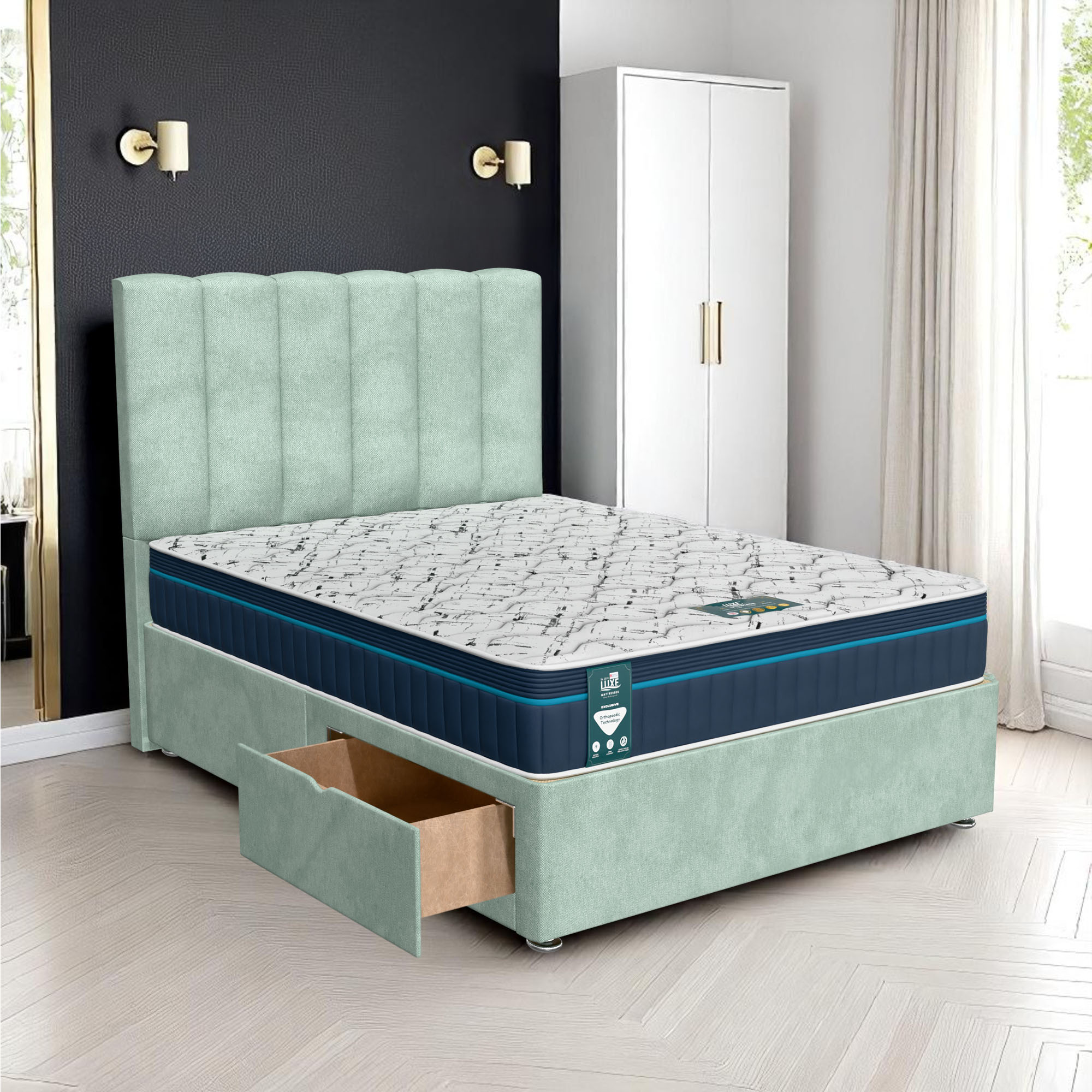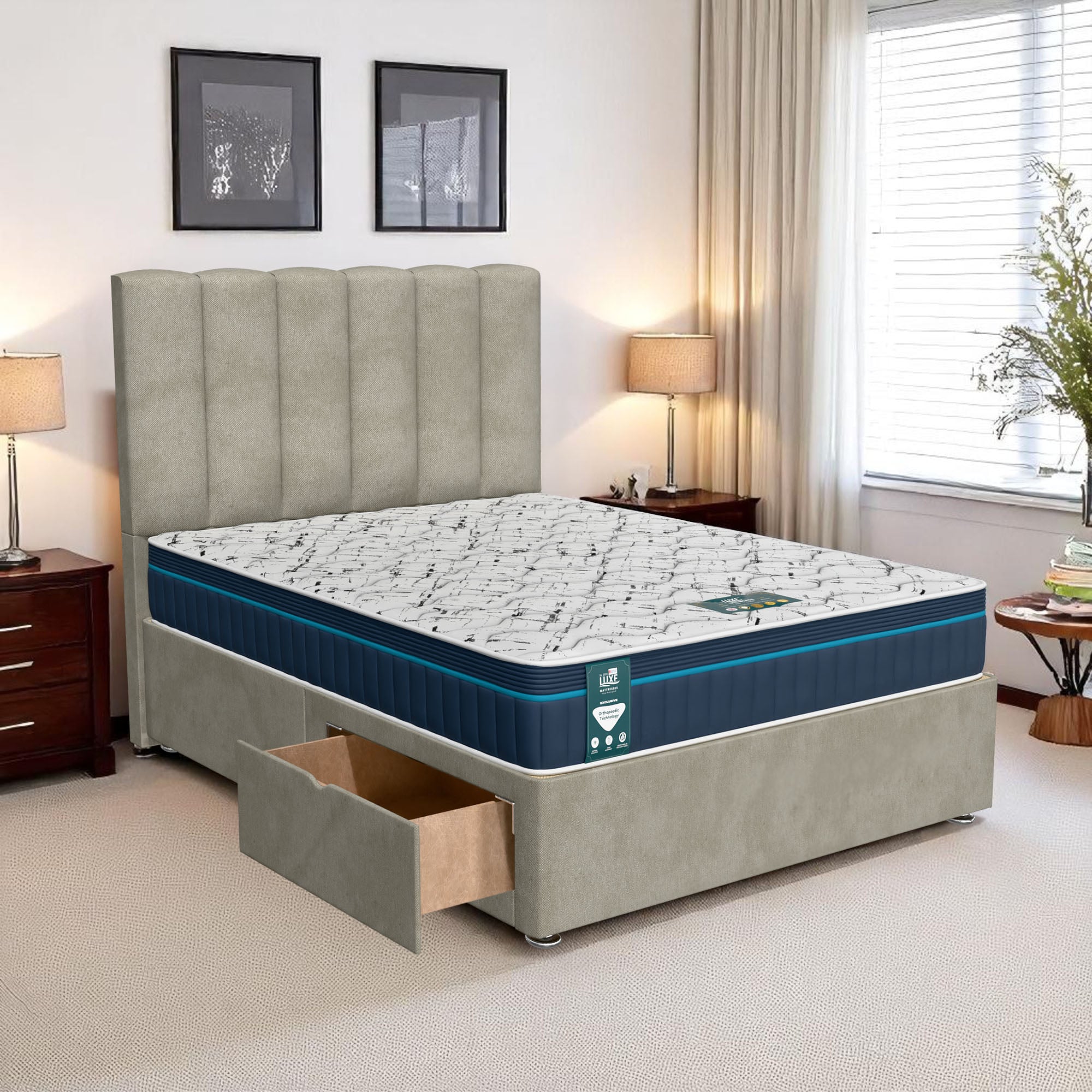 Available with up to four smooth-glide drawers, our divan beds offer practical hidden storage for bedding, towels, clothing, or seasonal items. The drawer system is engineered for easy opening and closing, maximising room space while keeping your bedroom organised and clutter-free.