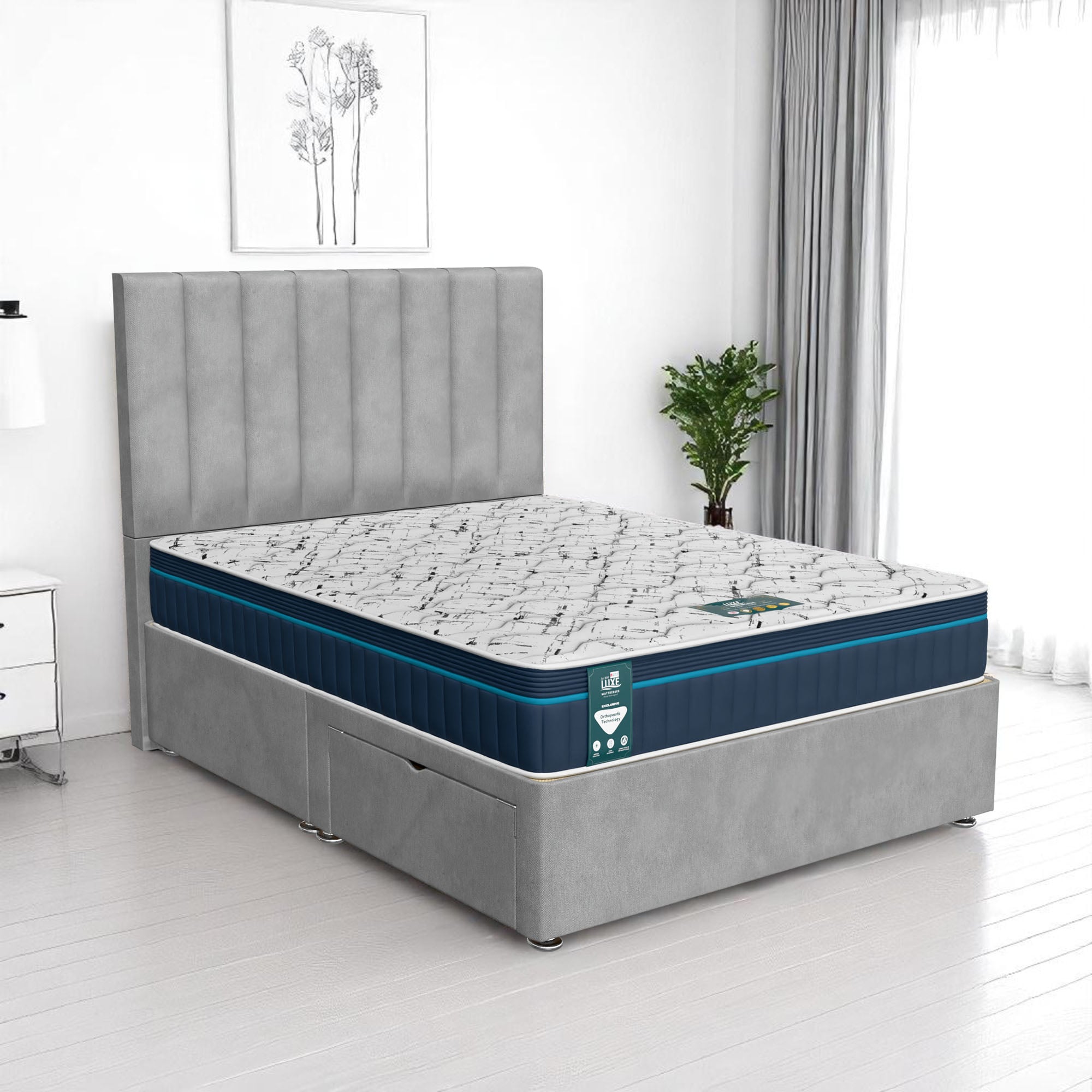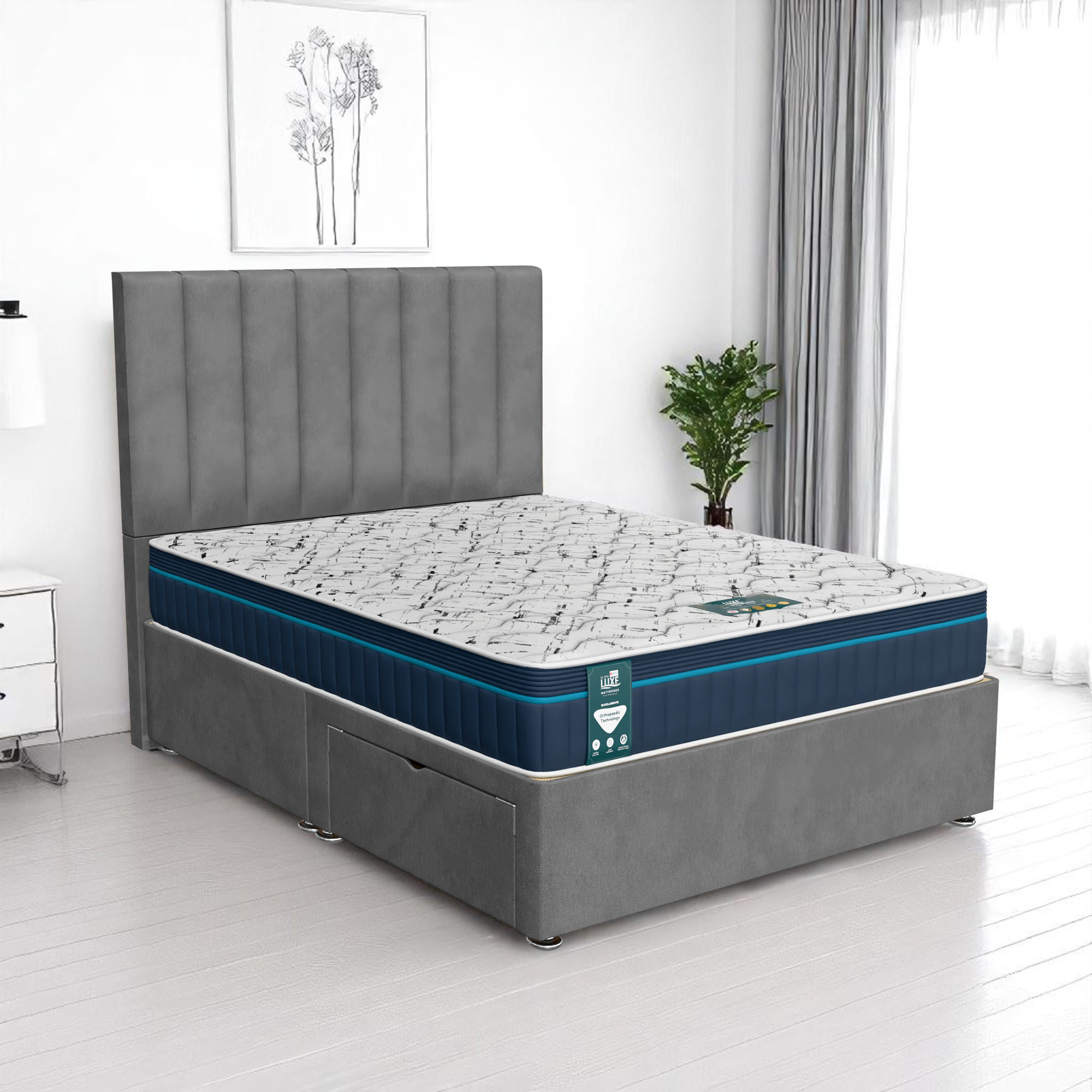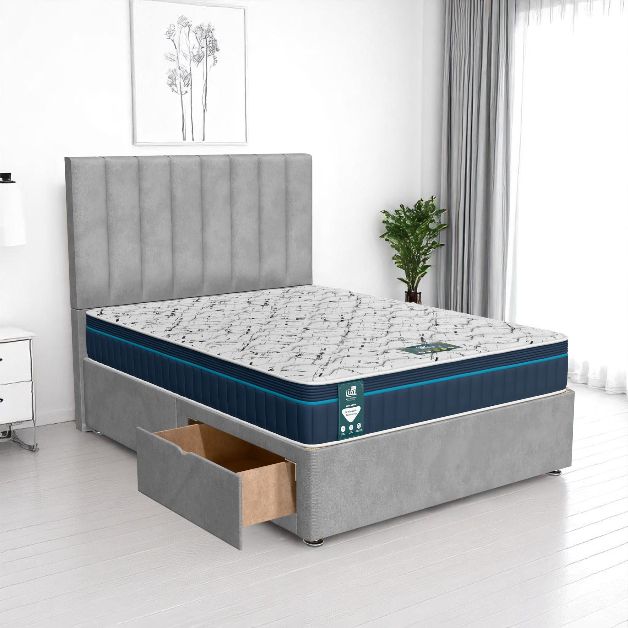 Available with up to four smooth-glide drawers, our divan beds offer practical hidden storage for bedding, towels, clothing, or seasonal items. The drawer system is engineered for easy opening and closing, maximising room space while keeping your bedroom organised and clutter-free.