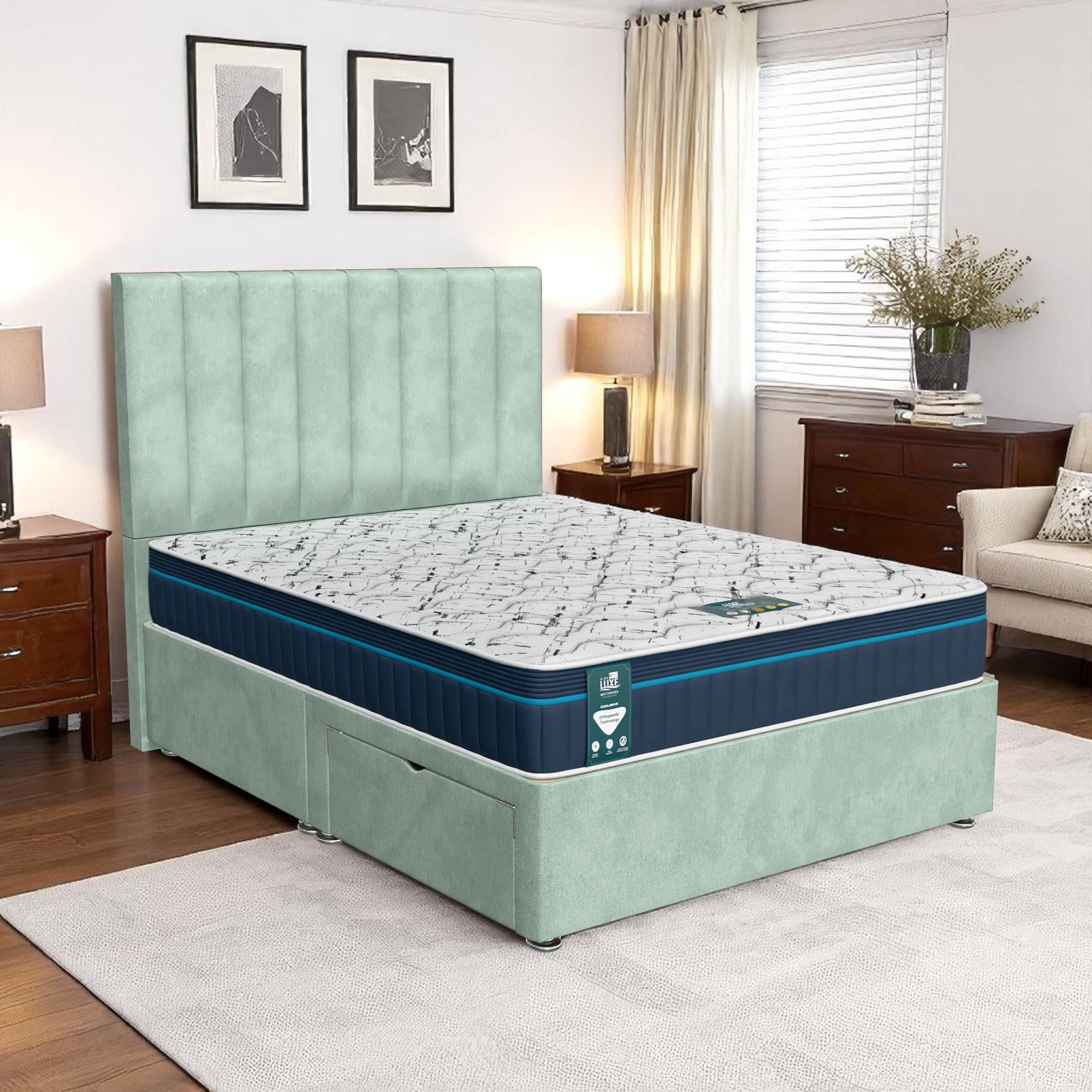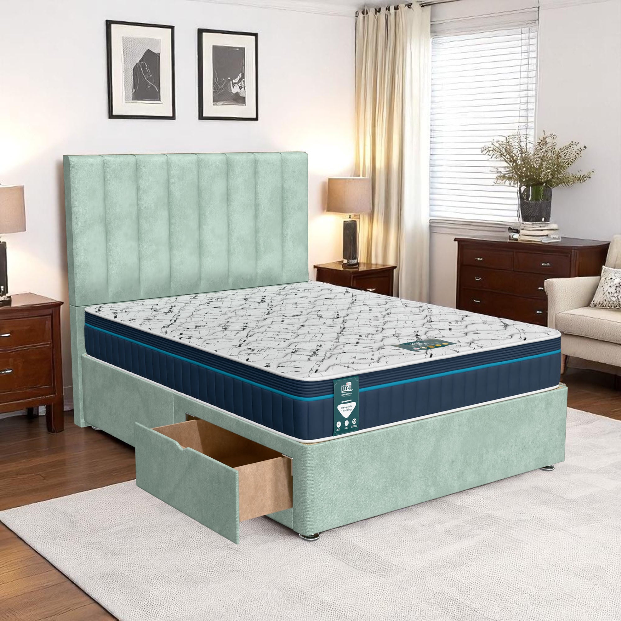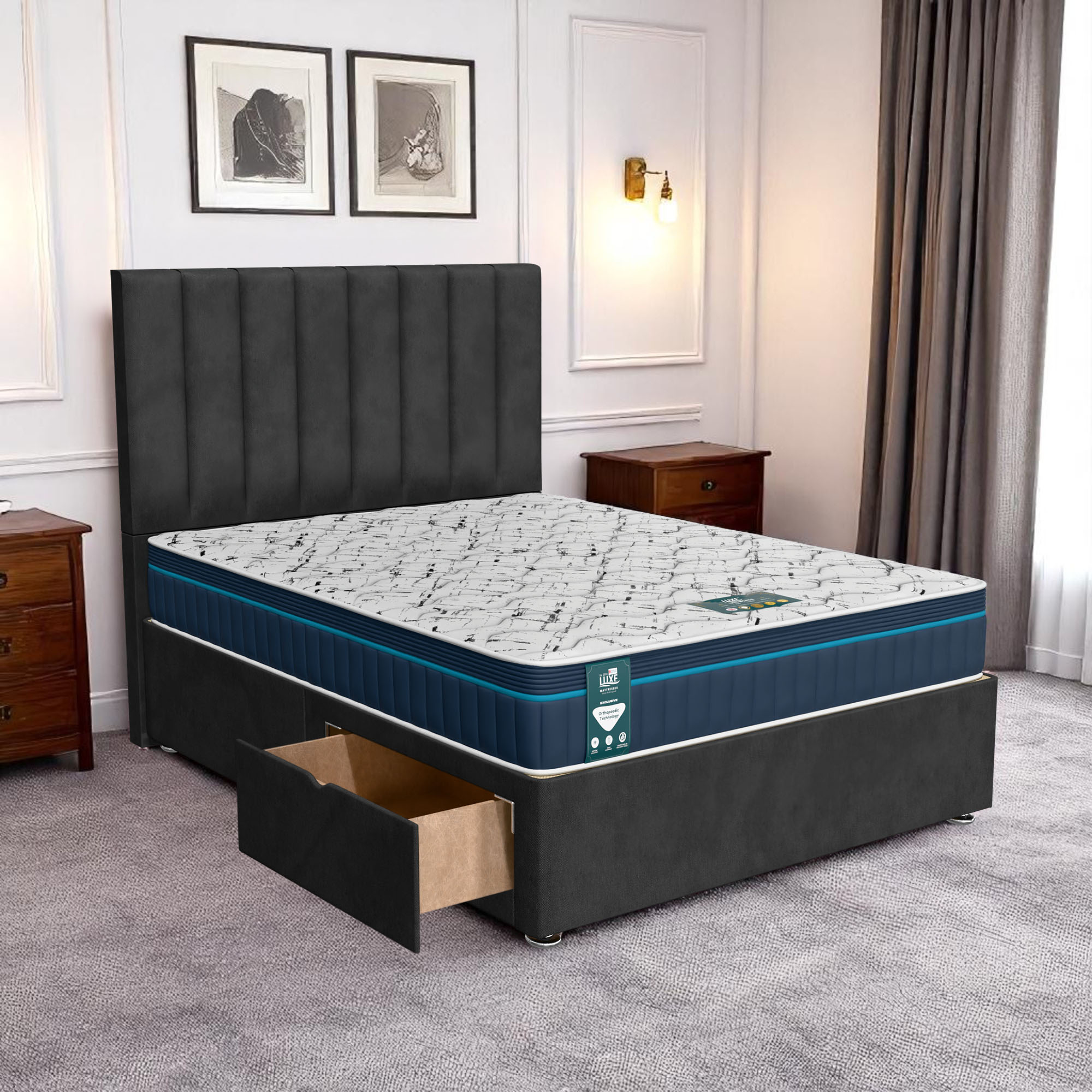 Available with up to four smooth-glide drawers, our divan beds offer practical hidden storage for bedding, towels, clothing, or seasonal items. The drawer system is engineered for easy opening and closing, maximising room space while keeping your bedroom organised and clutter-free.
