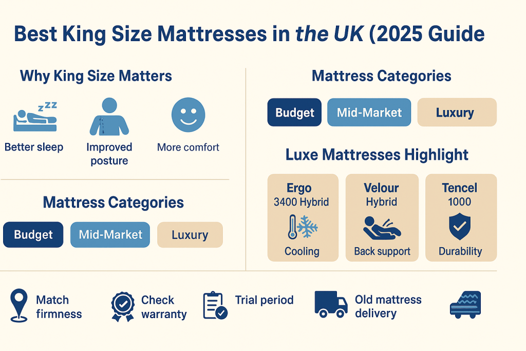 Selecting the right king size mattress can transform the quality of your sleep. A well-designed mattress is not only about comfort, it also supports posture, relieves back pain, and ensures you wake up feeling refreshed. For many people in the UK, the challenge is not knowing whether to go for a cheaper boxed mattress, a mid-range hybrid, or a handcrafted luxury model. With the market becoming increasingly competitive, choosing the right one requires careful research.
