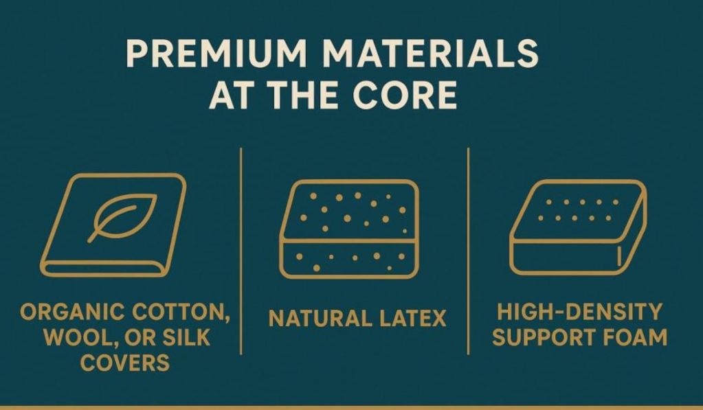 Luxury mattresses stand apart because of the quality of materials used inside them. Each layer is chosen to provide comfort, support, and durability that you won’t find in regular mattresses. Here’s a closer look at the premium materials at the heart of a high-end mattress:
