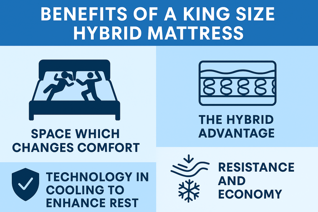 A king size hybrid mattress is not just a mat upgrade, it is an upgrade of lifestyle. The balance between foam and springs, the space, and cooling technology make it the best to enjoy peaceful nights. Anyone who cares about sleep, will have lasting comfort, live healthier, and will experience a bedroom that is truly a sanctuary when they invest in a king size hybrid.